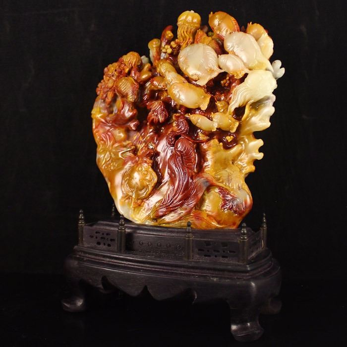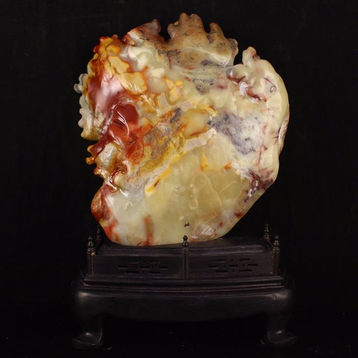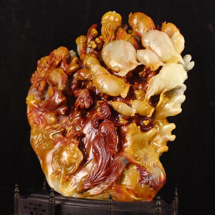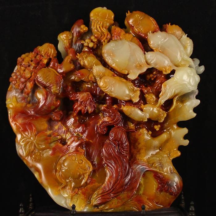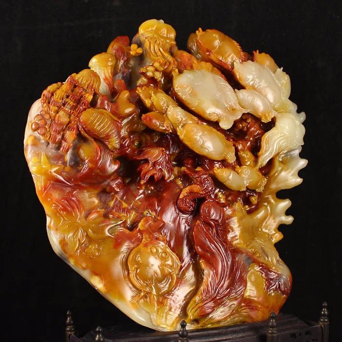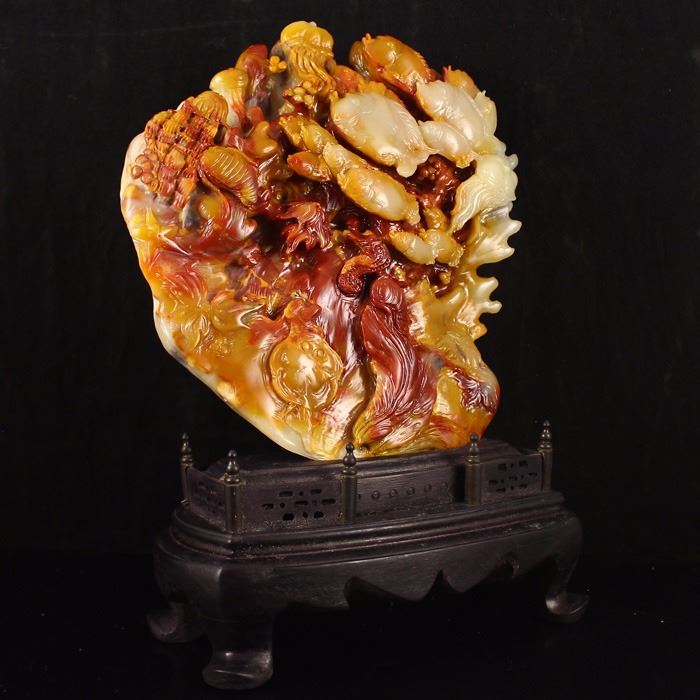 Chinese Shoushan Stone Statue - Tropical Fish Dimension: 160x165x35(mm)6.30x6.50x1.38(inches) Weight 2.51 lbs/1140 g The total weight does not include the base. The base is included after you have won the auction.