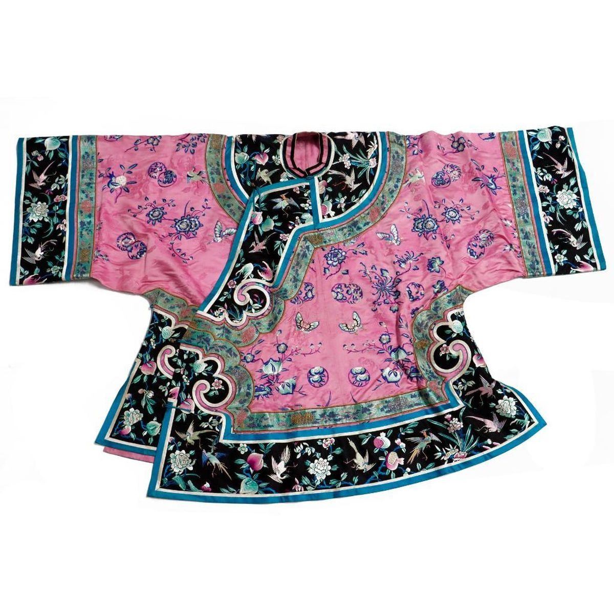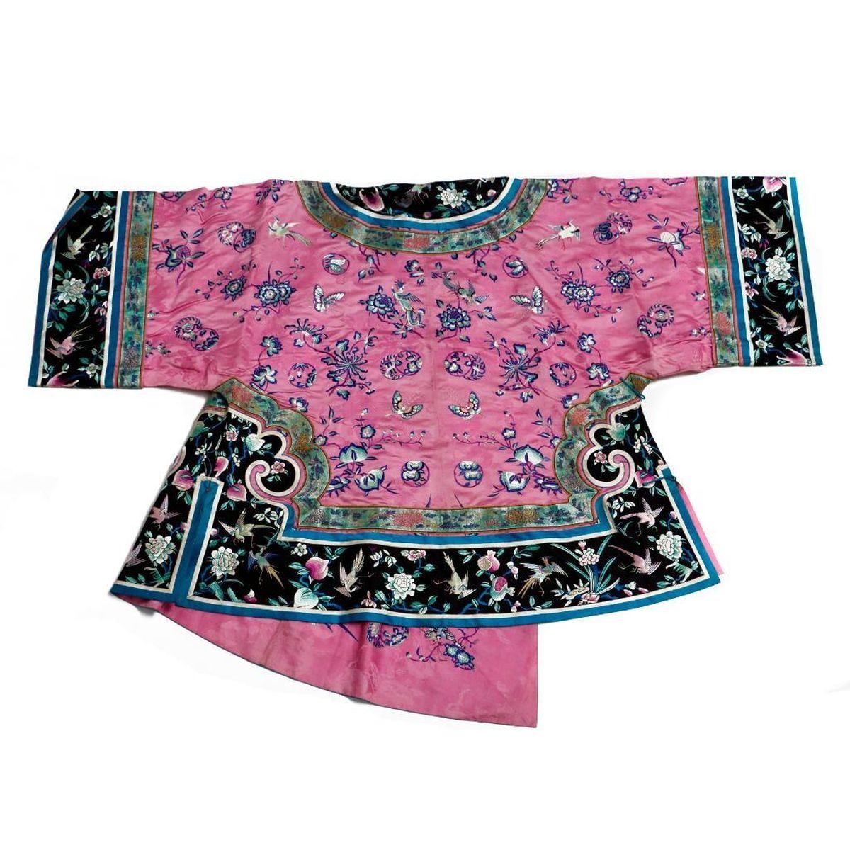 Circa 1930. Greatest length 32in. (81cm) Condition The pink jacket in very good condition. Some fraying at edges of neck and hem and fading to the brown jacket.