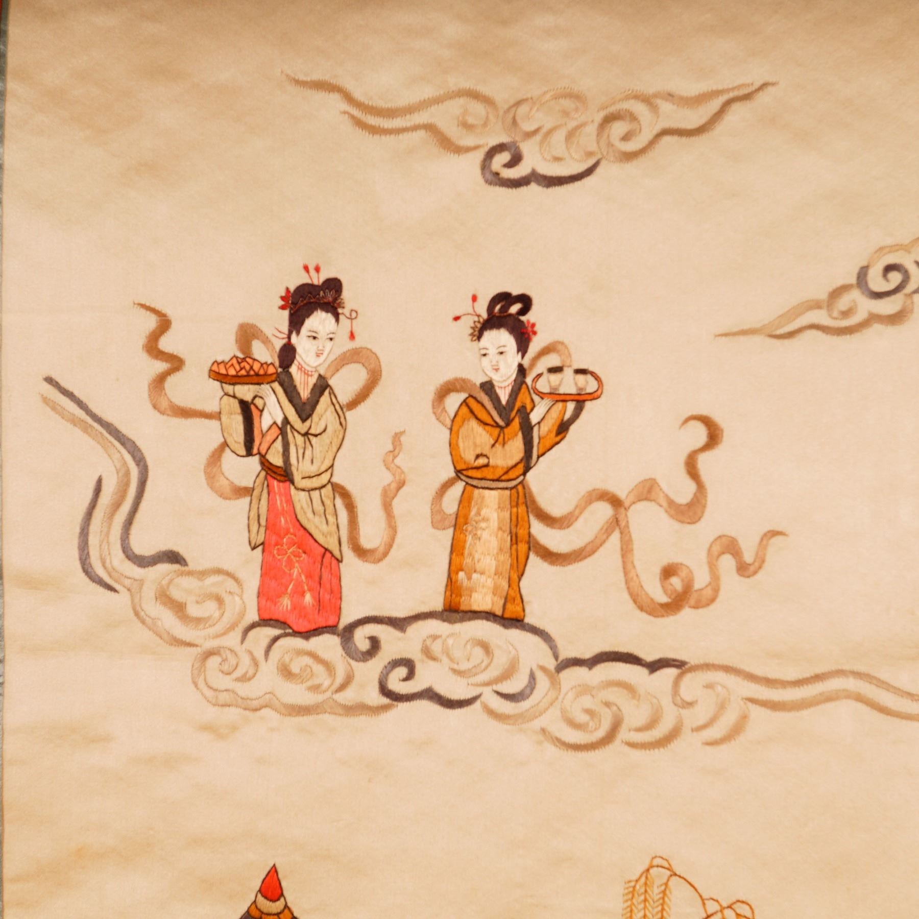 Chinese Silk Embroidery on Silk, Immortal Maidens Scene