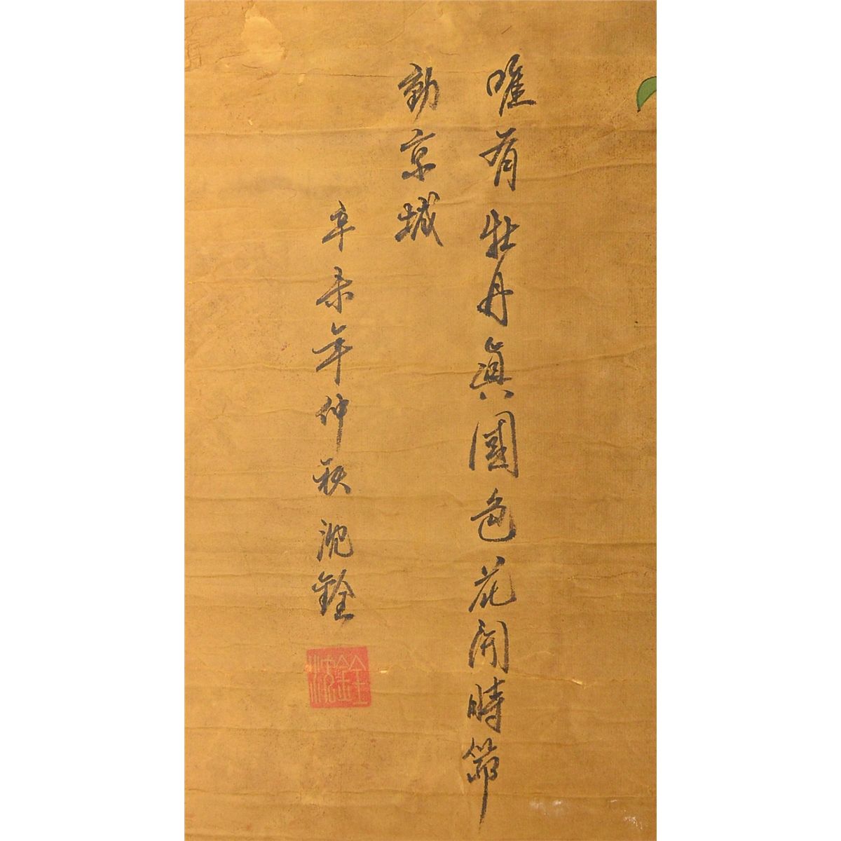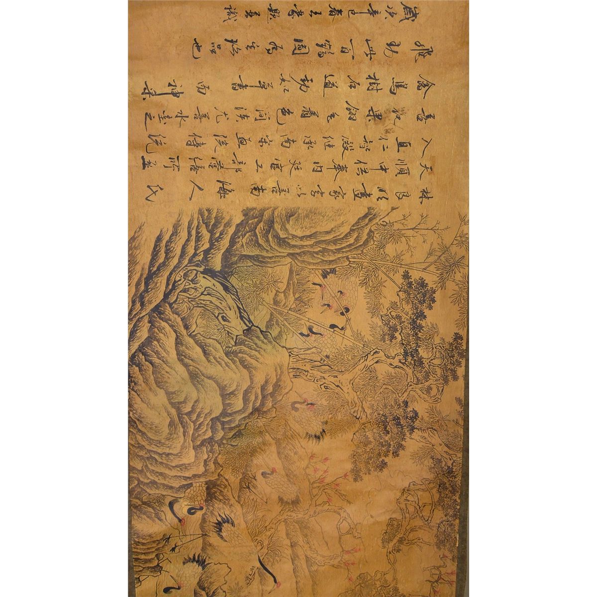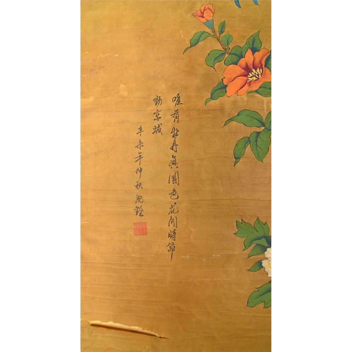 Chinese silk watercolour on lithographed on paper; inscribed and signed with one artist seal; 415 cm x 42 cm