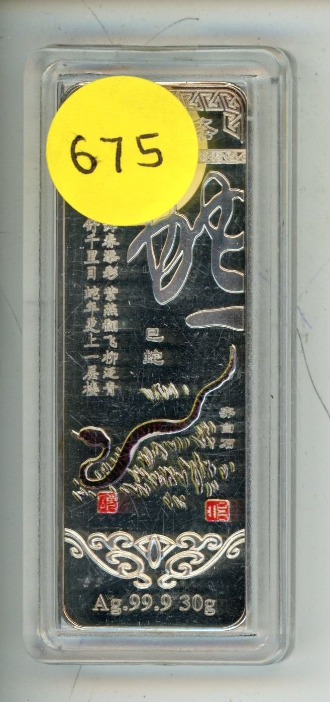 Chinese Silver Bar. (Ag 99.9%) - Weight 30g.