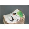 Chinese silver cosmetic case; with curved top set with famille rose porcelain plaque; painted with cranes; body decorated with dots and leafy pattern; 5 cm x 10 cm, 230 grams