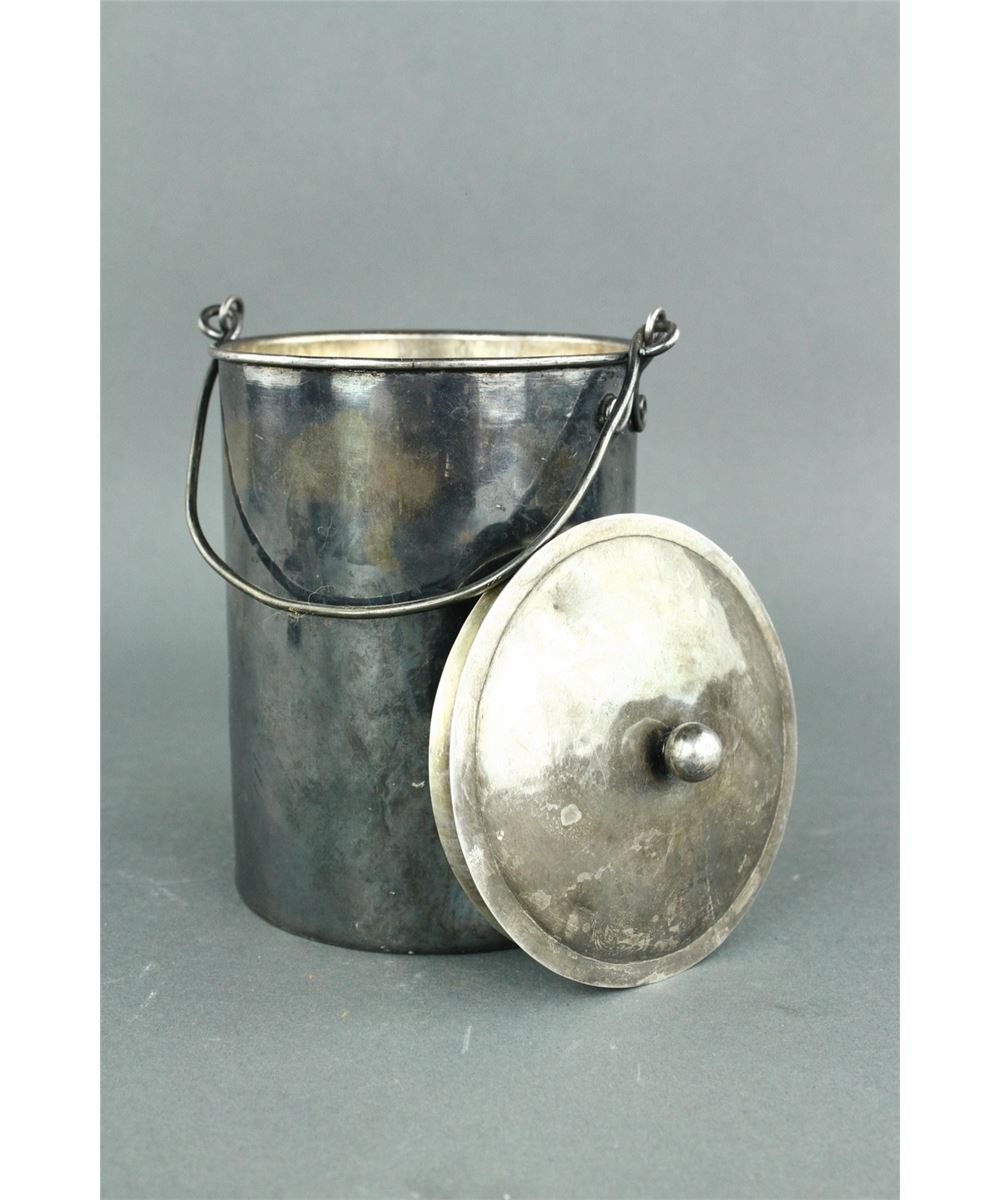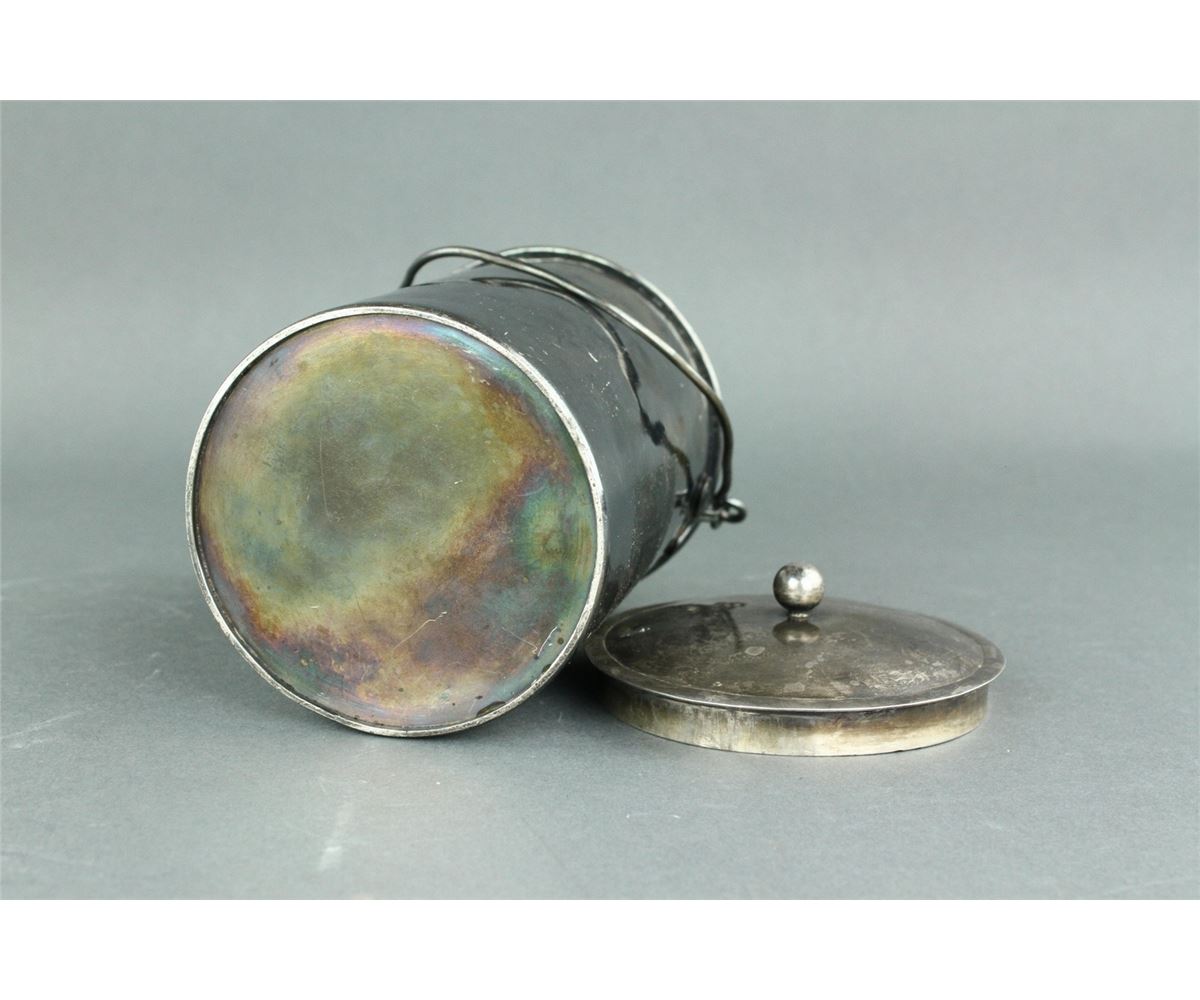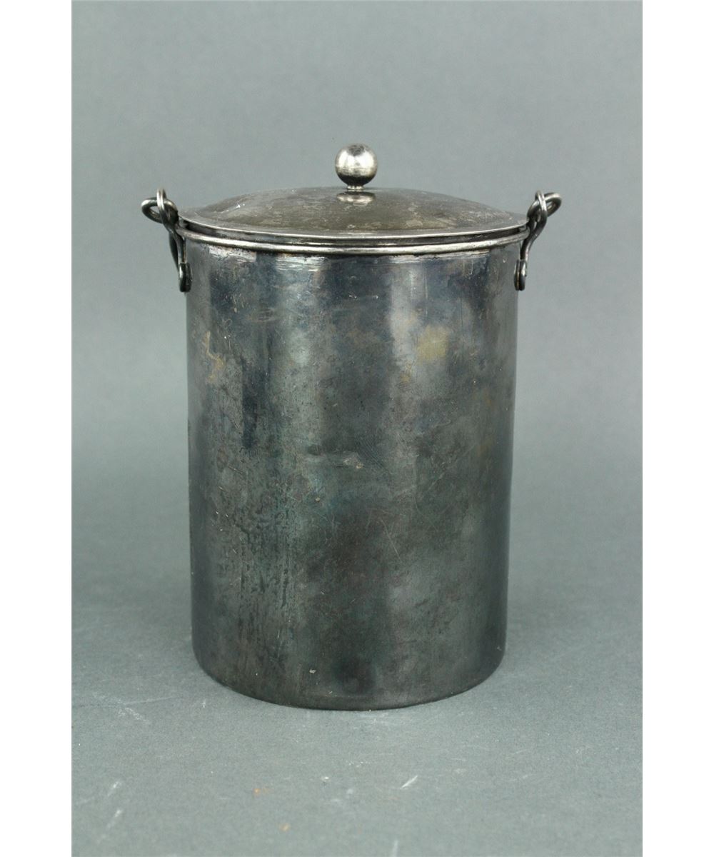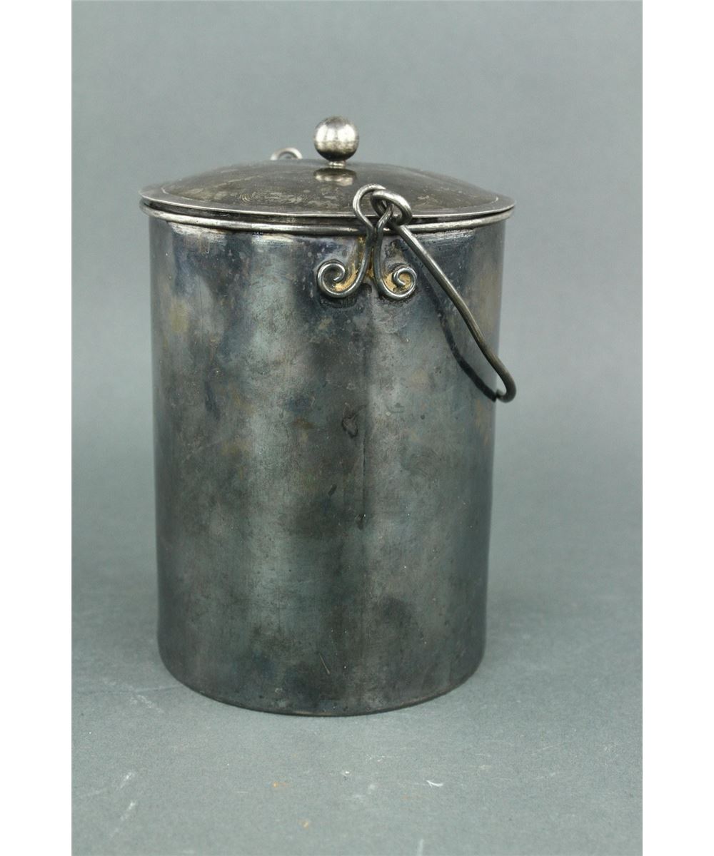 Chinese silver teapot; of cylindrical form with a lid and an upright handle; H: 12 cm, D: 9 cm, 348 grams