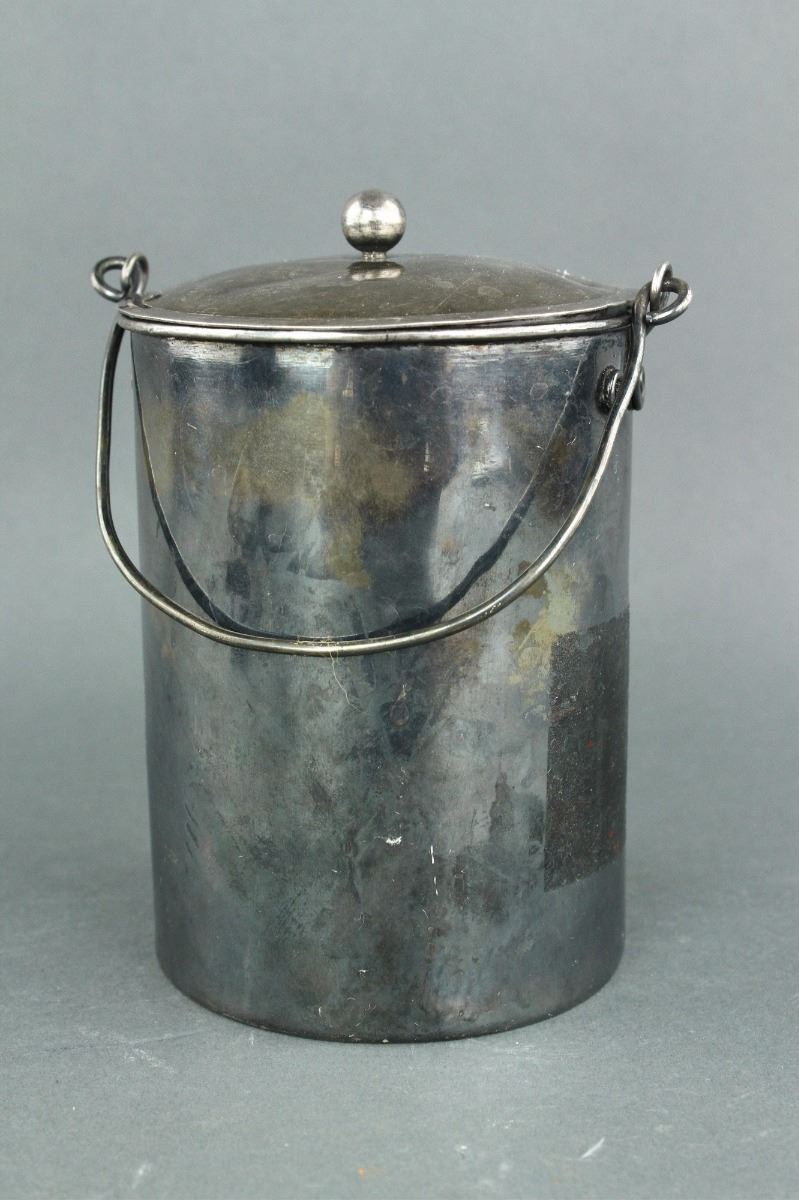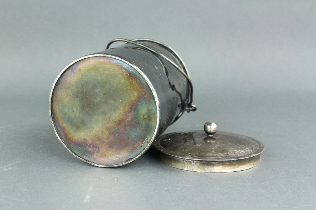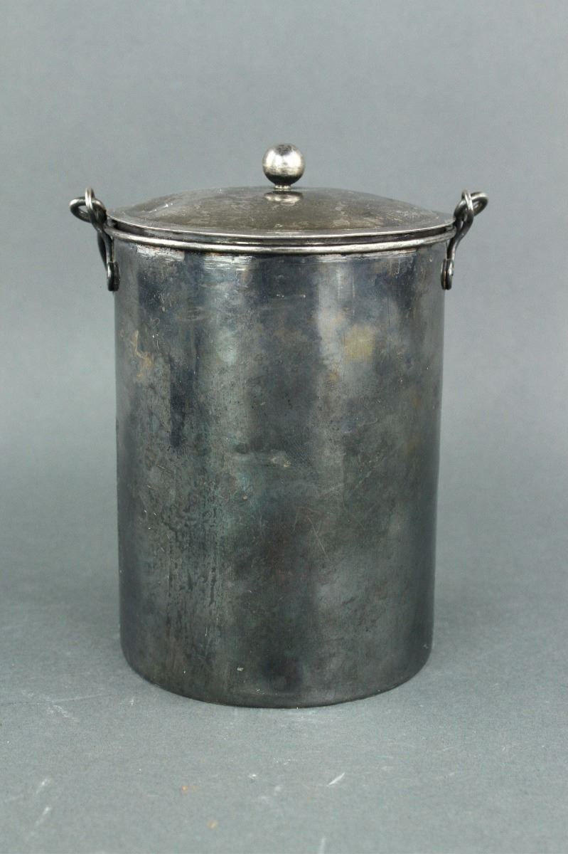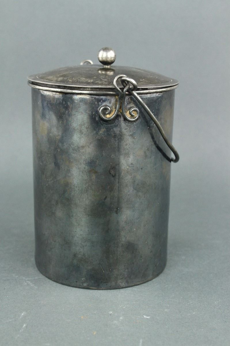 Chinese silver teapot; of cylindrical form with a lid and an upright handle; H: 12 cm, D: 9 cm, 348 grams