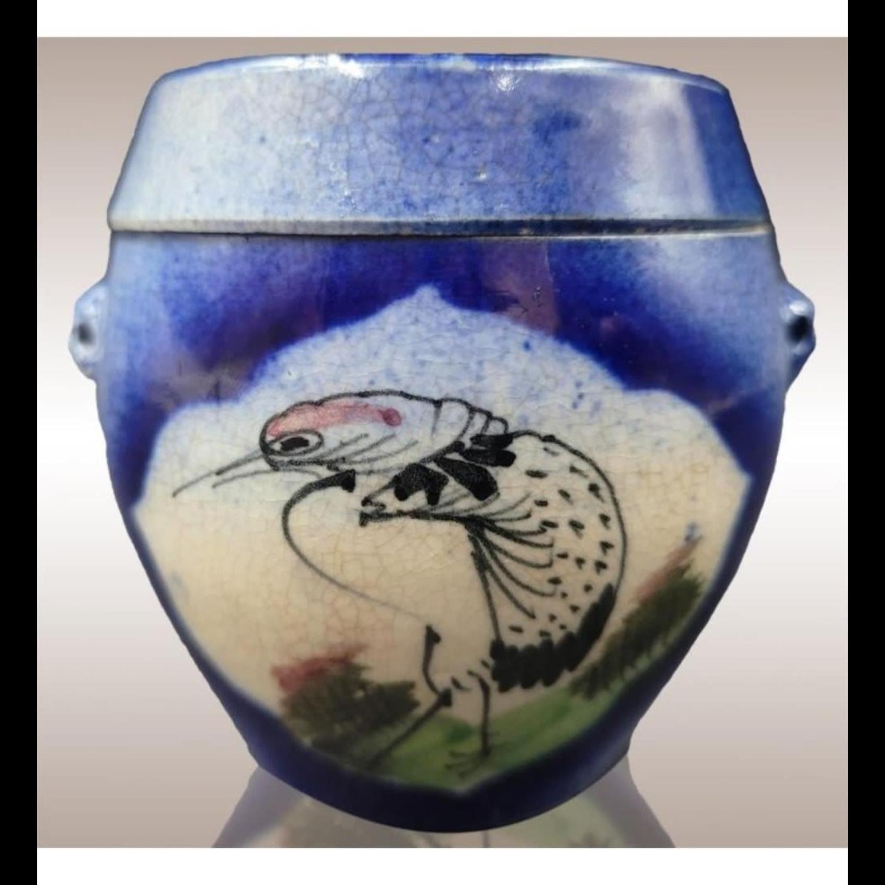 Chinese Small Blue and White Lidded Pot With Calligraphy. Measures approx. 3" X 3.5". \\ PROVENANCE: MISSOURI ESTATE.