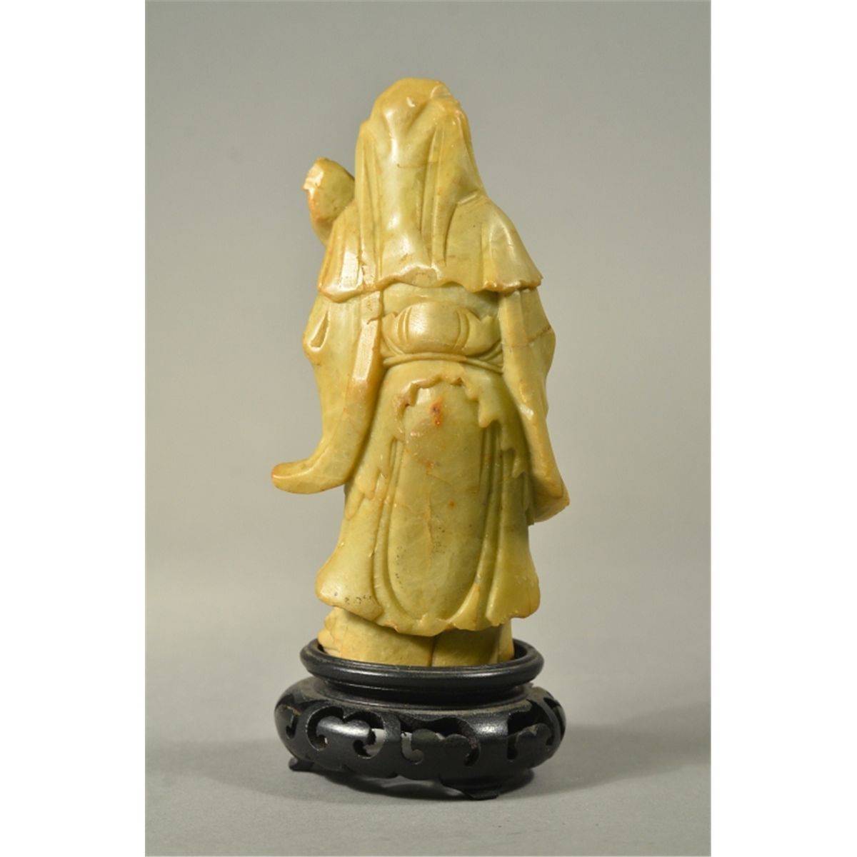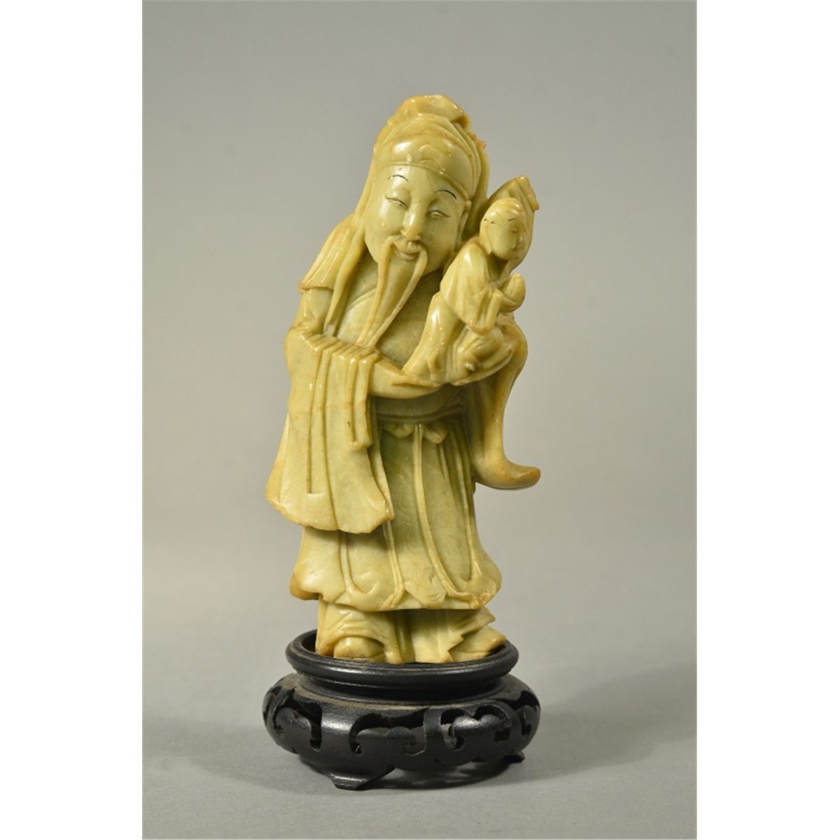 Finely carved Chinese soapstone figure of man cradling a baby; 7 1/2" tall, 2 3/4" wide