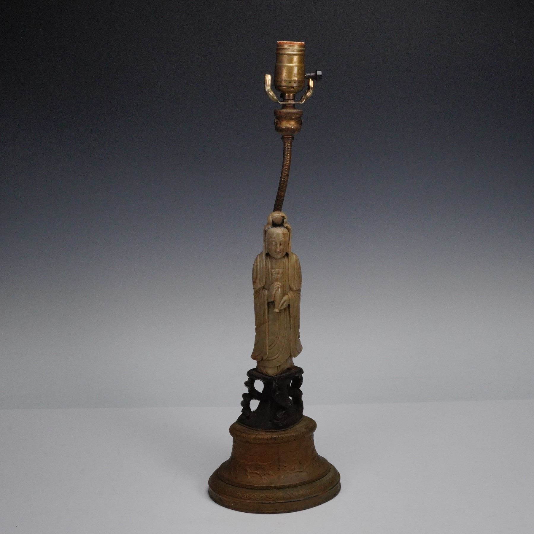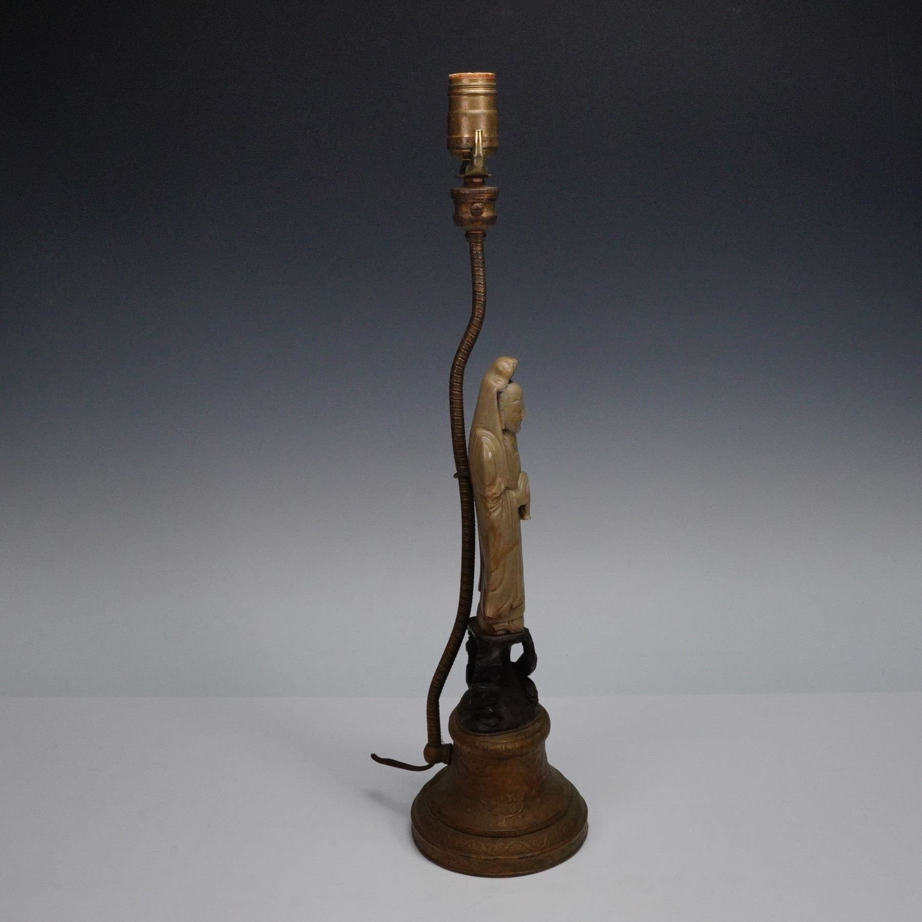 Chinese Soapstone Figural Table Lamp