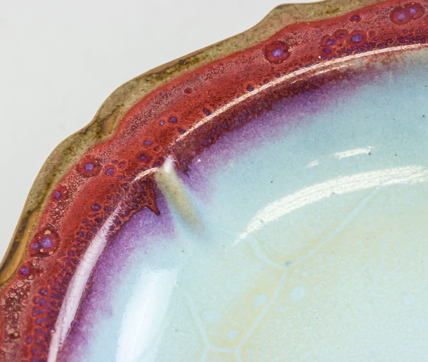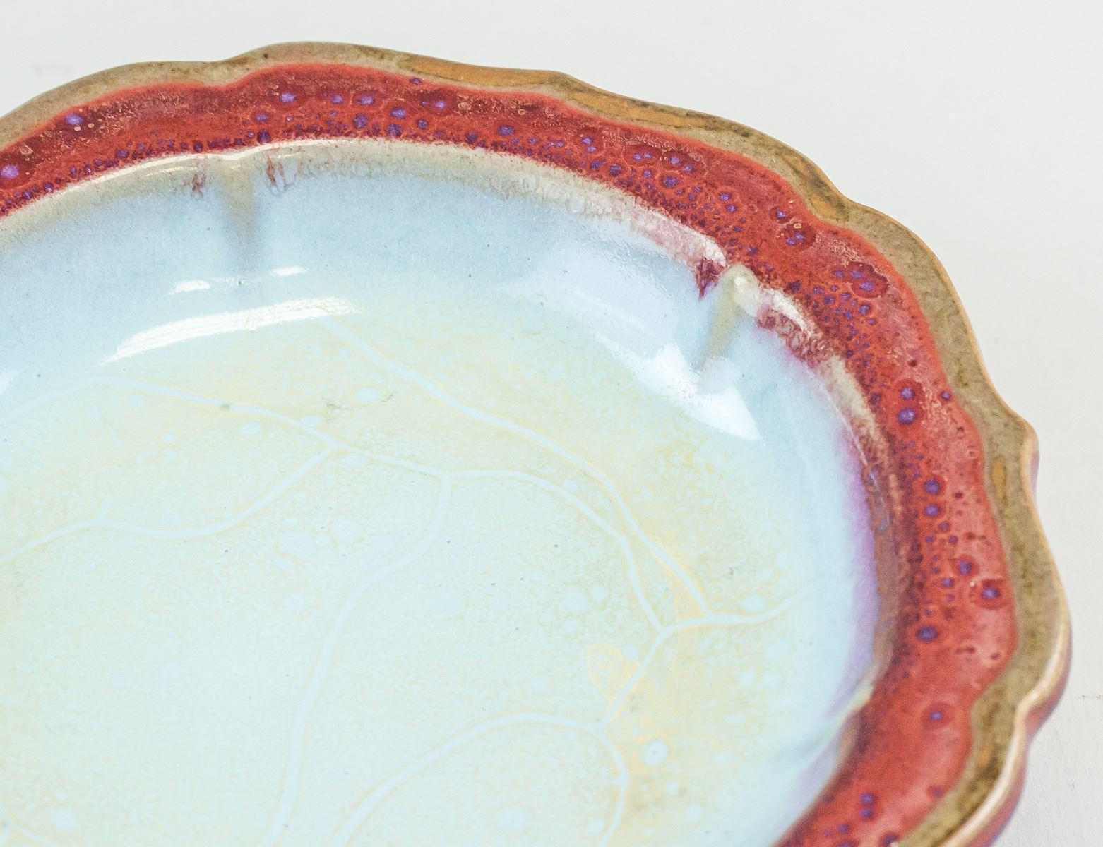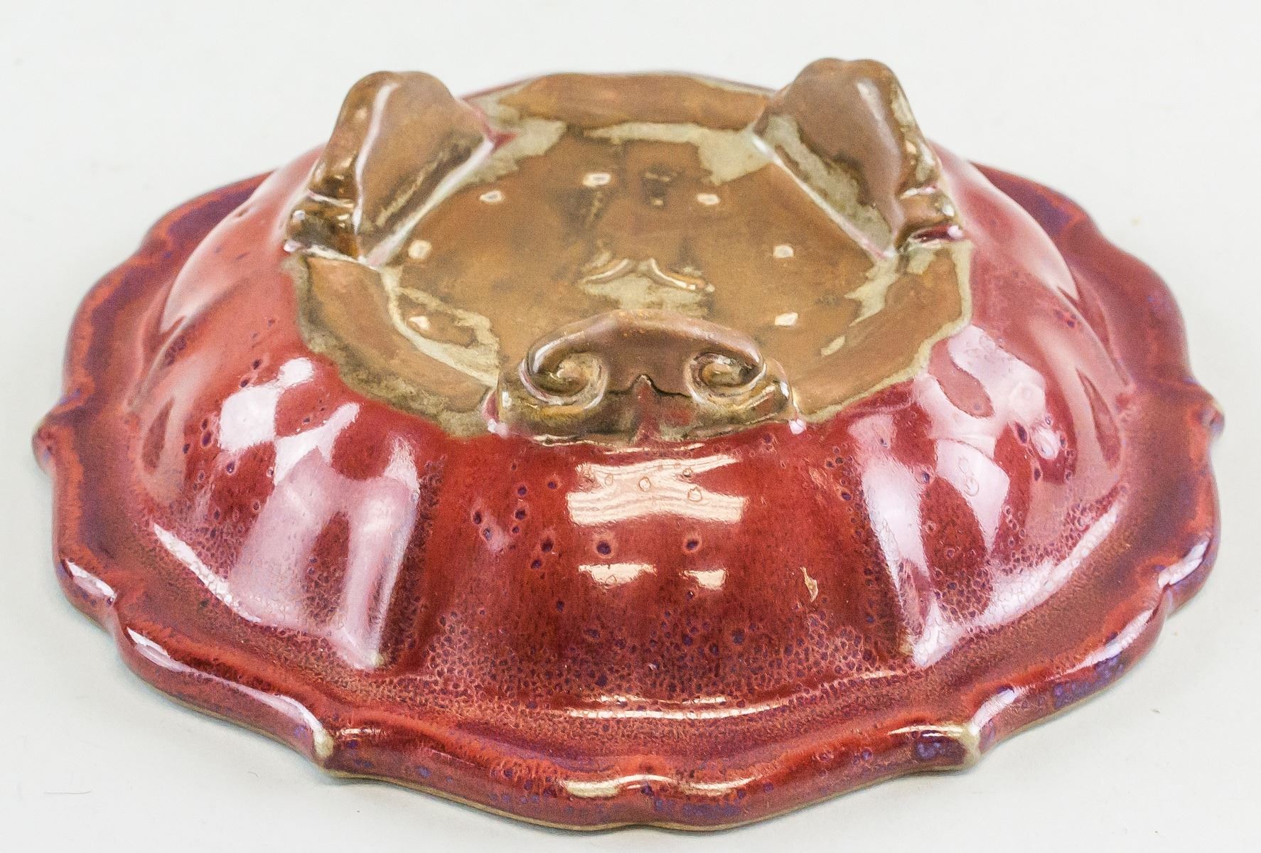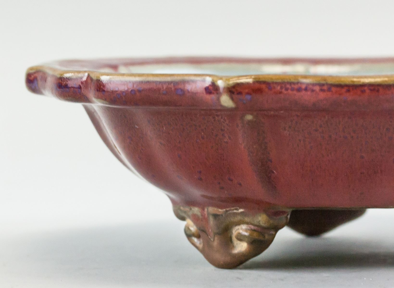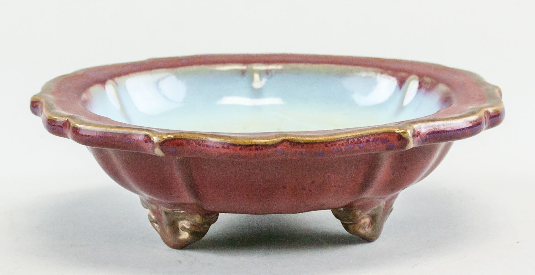 Chinese Song/Ming copper red porcelain bowl. Of foliated edge. Supported on three legs. 6 x 17 cm, 553 grams