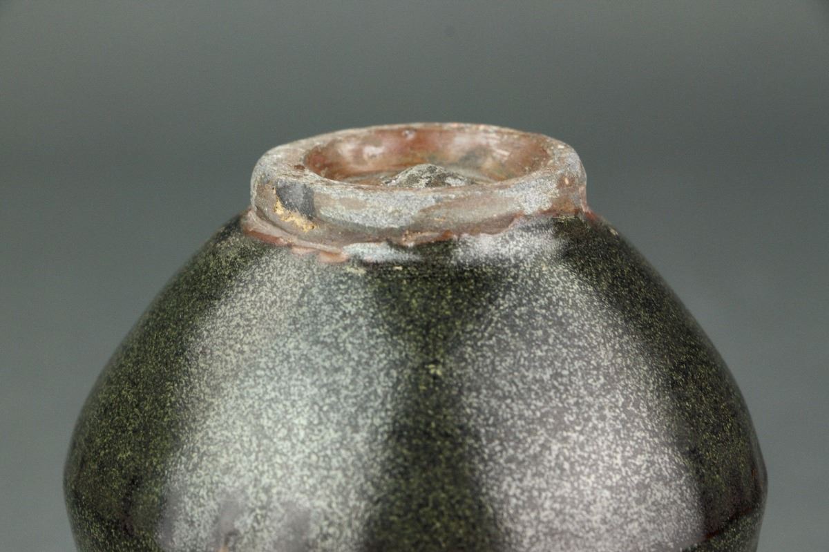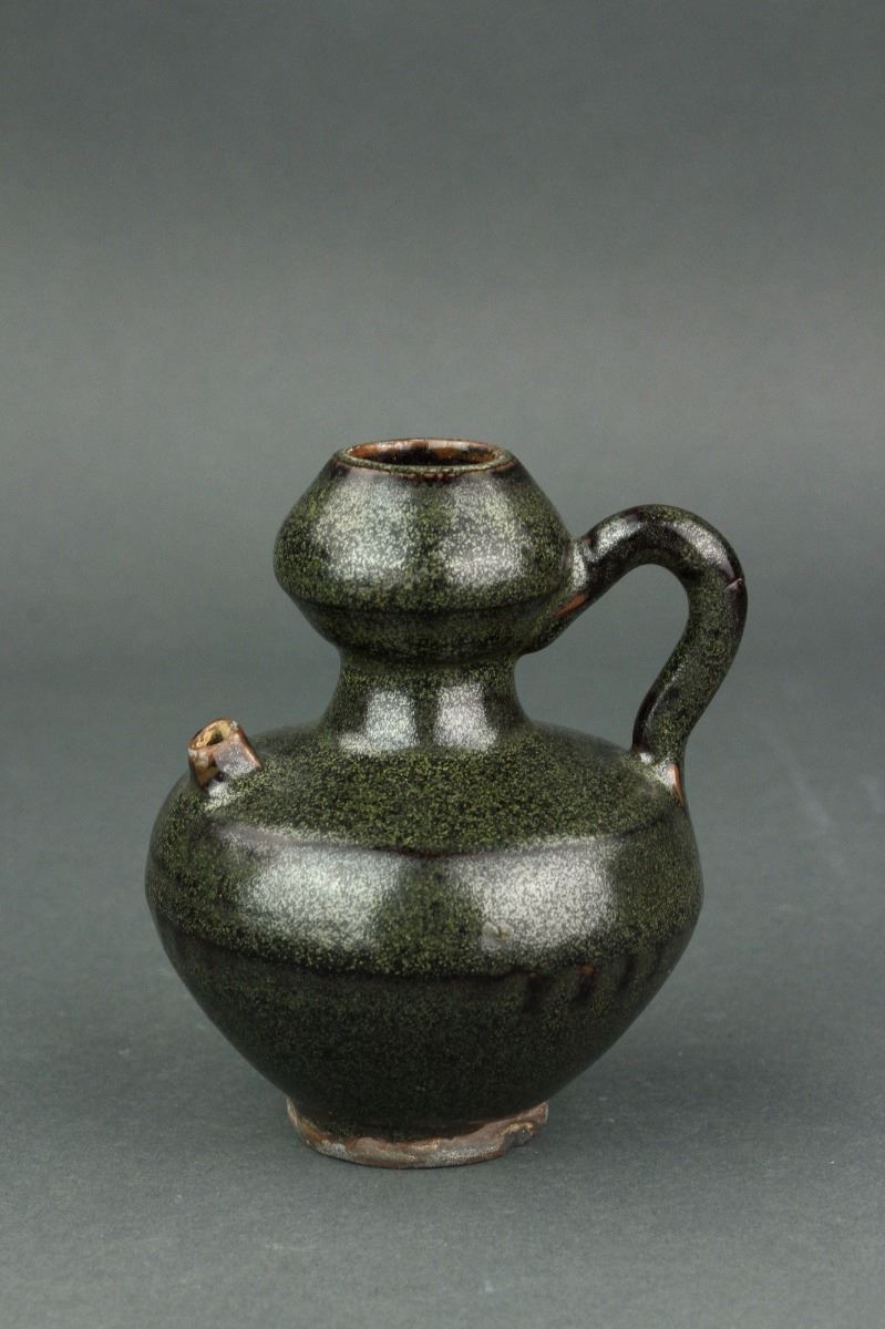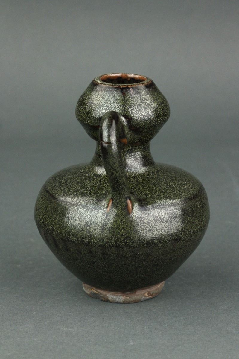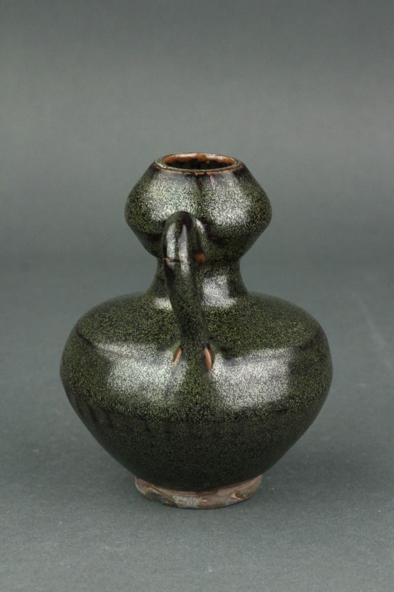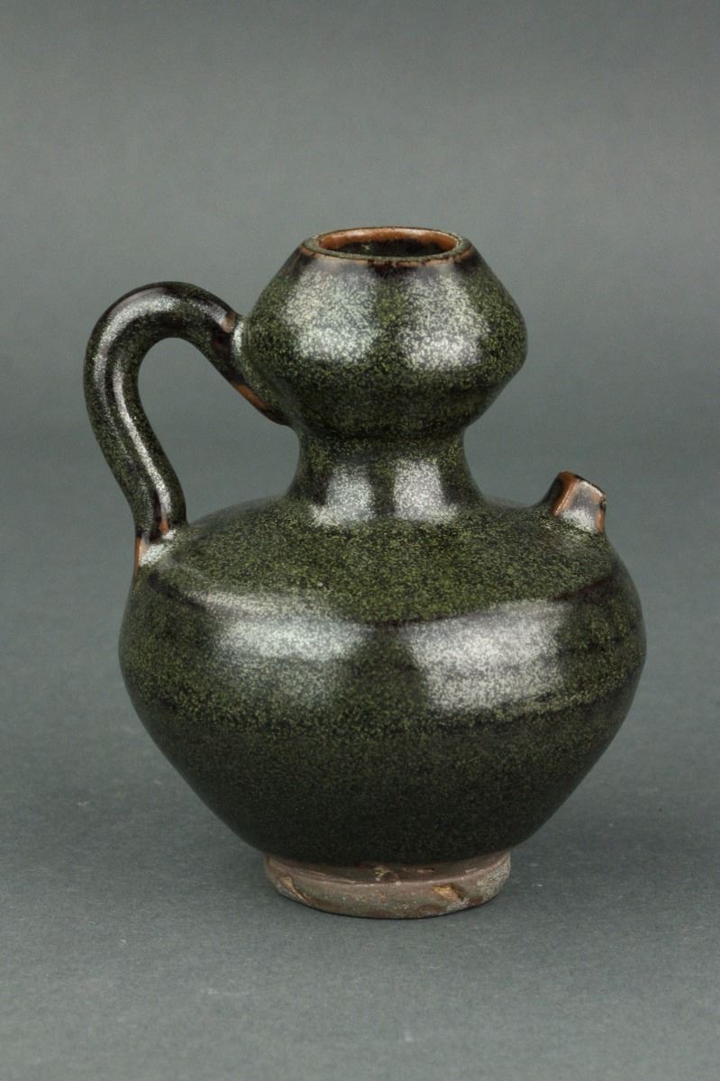 Chinese porcelain teapot; Song style; of double gourd body with handle and spout; unglazed base; H: 11 cm, W: 9 cm, 245 grams