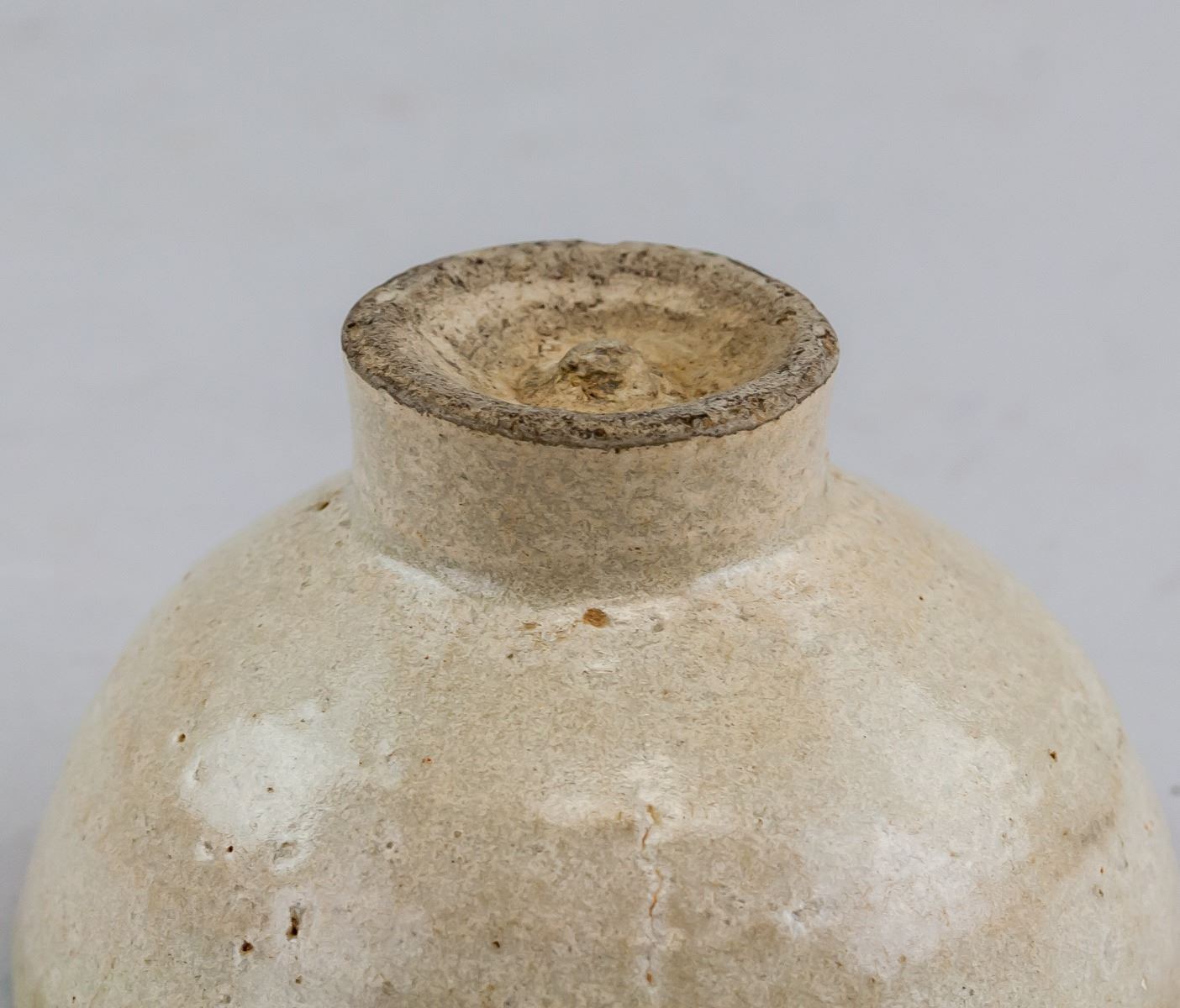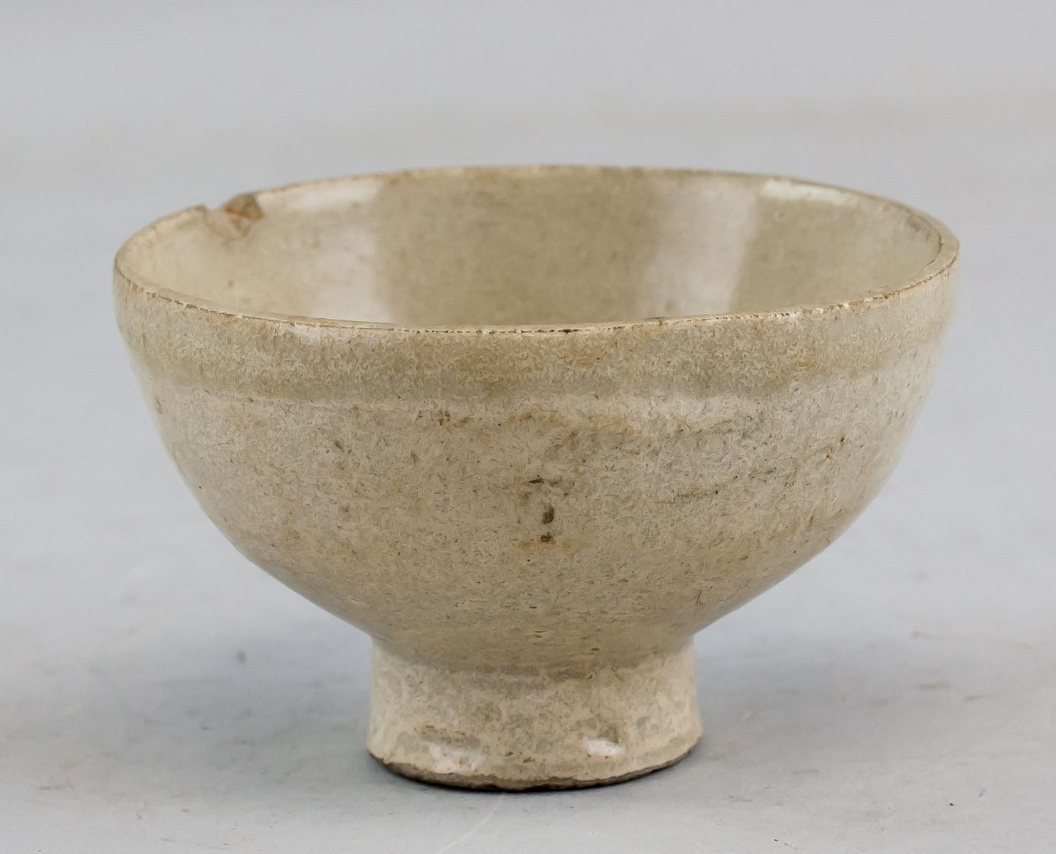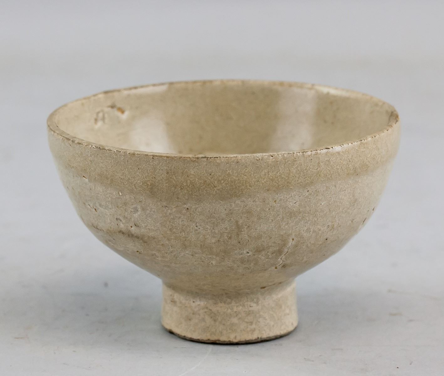 Chinese Song style pottery bowl. Of rounded edge, tapering to bottom, supported on small short foot rim. 5.5 x 8 cm, 99 grams