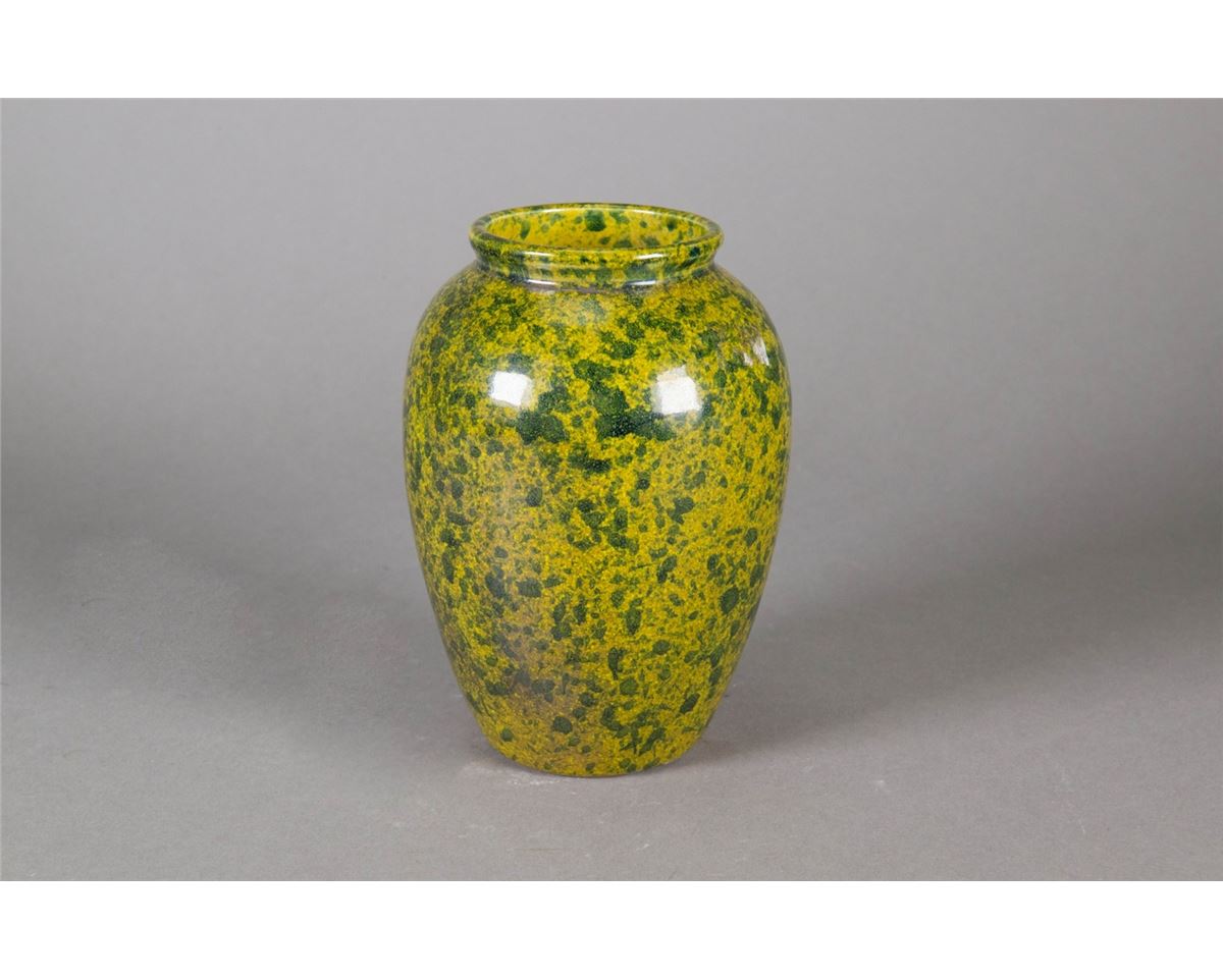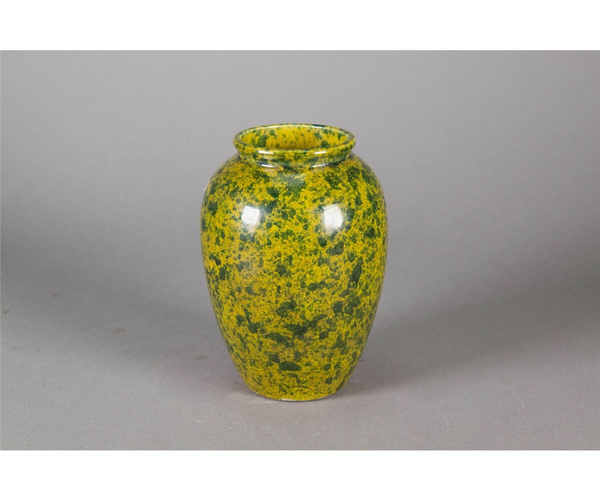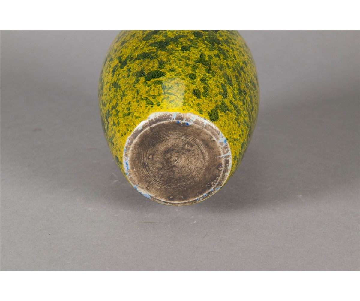 Chinese spinach green porcelain vase; of oval body; of yellow ground with mottled spinach green tone; H: 15 cm, D: 12 cm, 495 grams