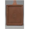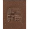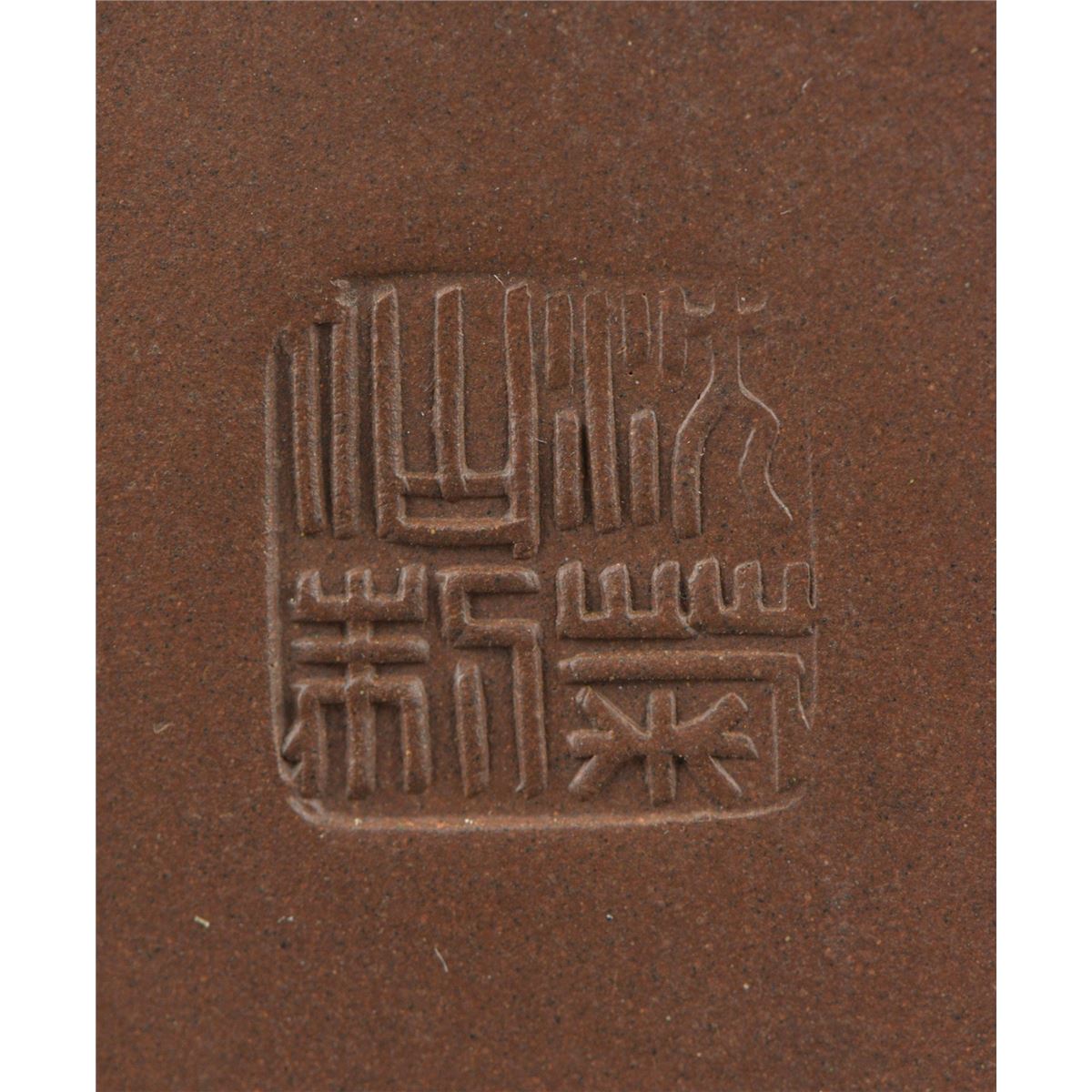 Chinese square form yixing pottery tea pot with tall handle and short spout. Lid marked underneath and 4 character seal mark on base. H: 11 cm, L: 12 cm, D: 7 cm. Provenance: Eastern Shen Collection, Toronto