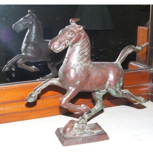 unsigned. Chinese. 19th century. Bronze. Chinese school sculpture depicting a horse running on rocky ground.