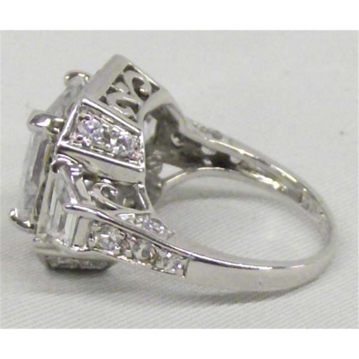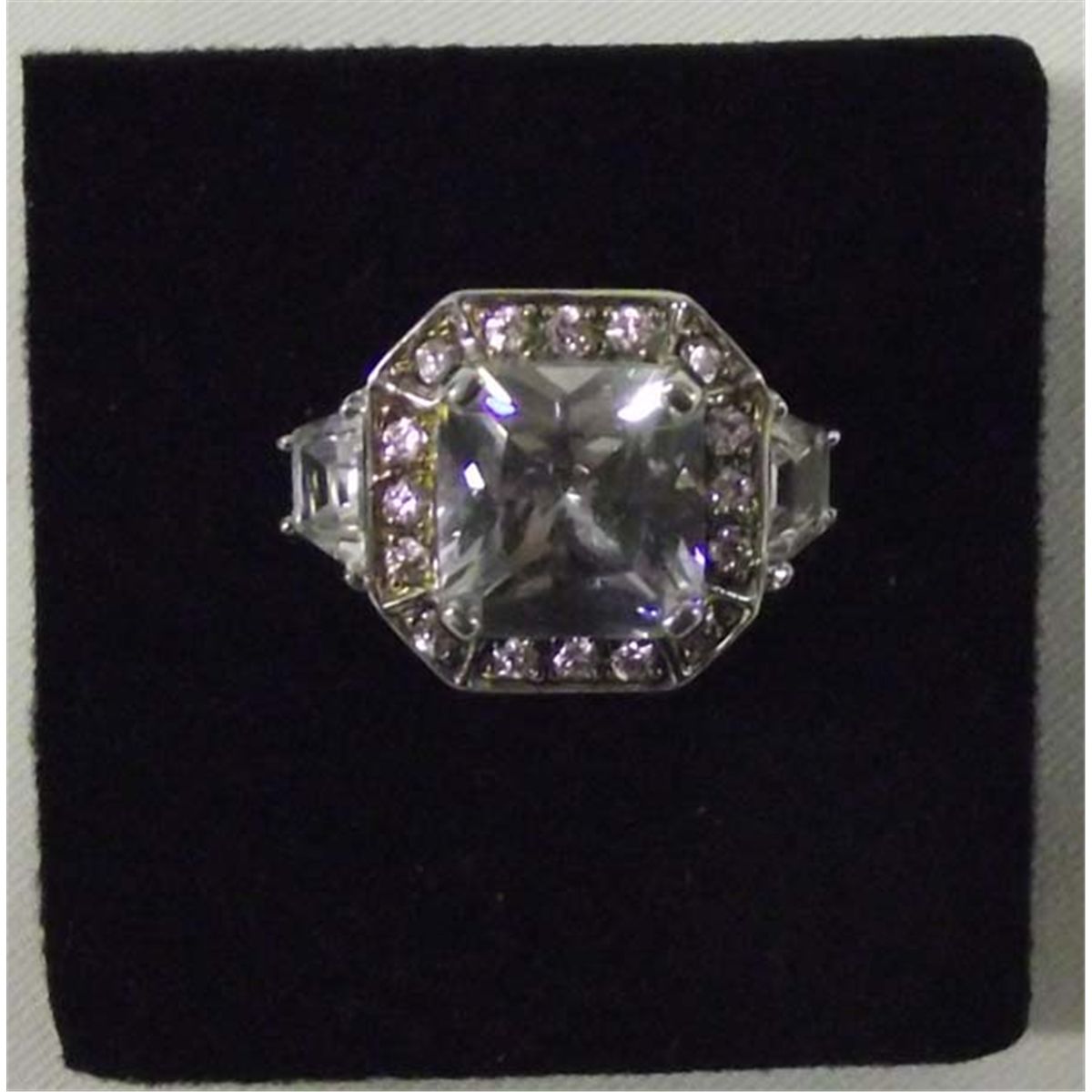 DESCRIPTION: Ladies sterling silver setting with brilliant cubic zirconium clear and pink nuggets. SIZE: 7.5 Buyer pays actual shipping and handling charges. (see terms and conditions for more information).