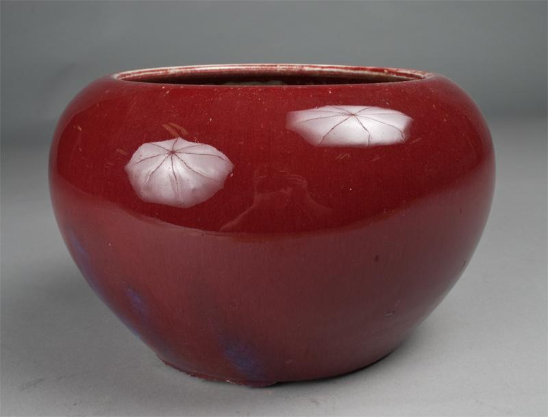 With purple highlights and unglazed foot base, 10.75"D X 7"H, foot with several chips, circa 19th century.
