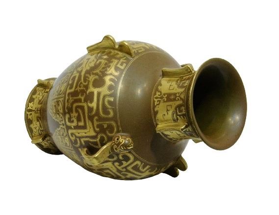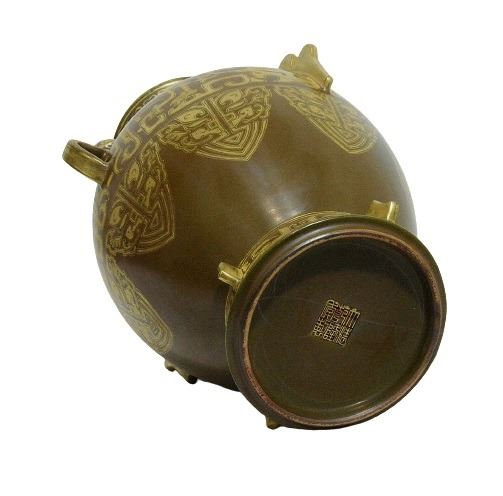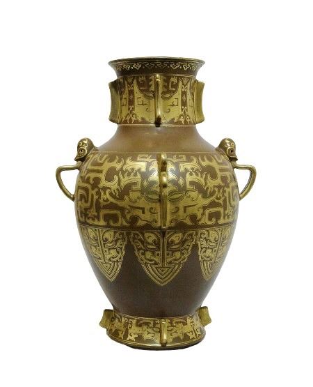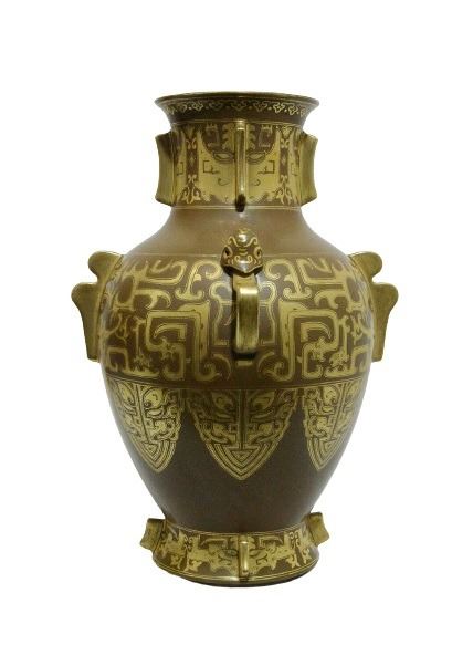Chinese Teadust Gilt Porcelain Vase, decorated with double ear. It was created by skilled craftsmen in traditional style with fine handcrafts. the handwork is very fine with incredible detailling. This is a great piece of valuable collection, a valuable personal alter or a very good present. Don't miss out this chance to get it .Good luck to you!