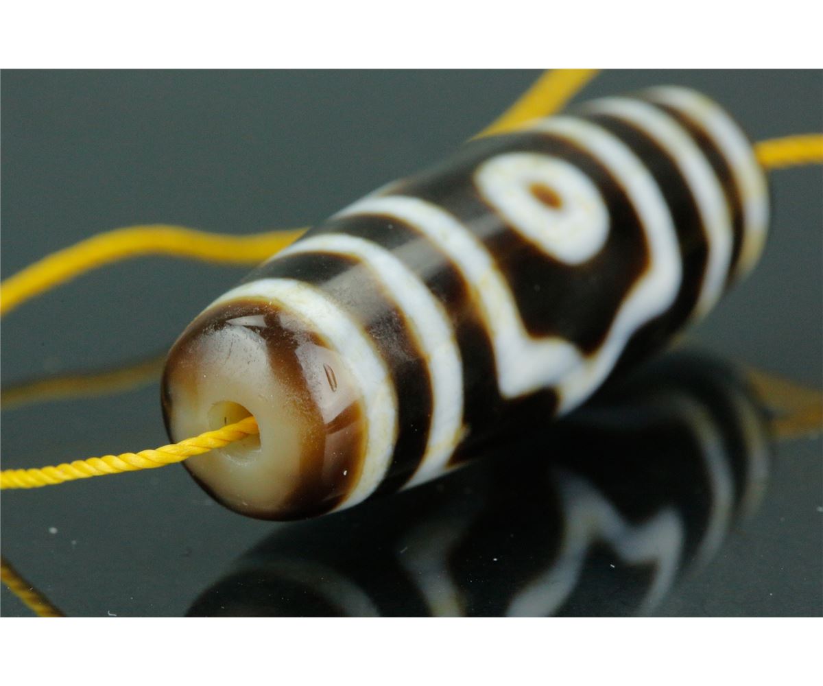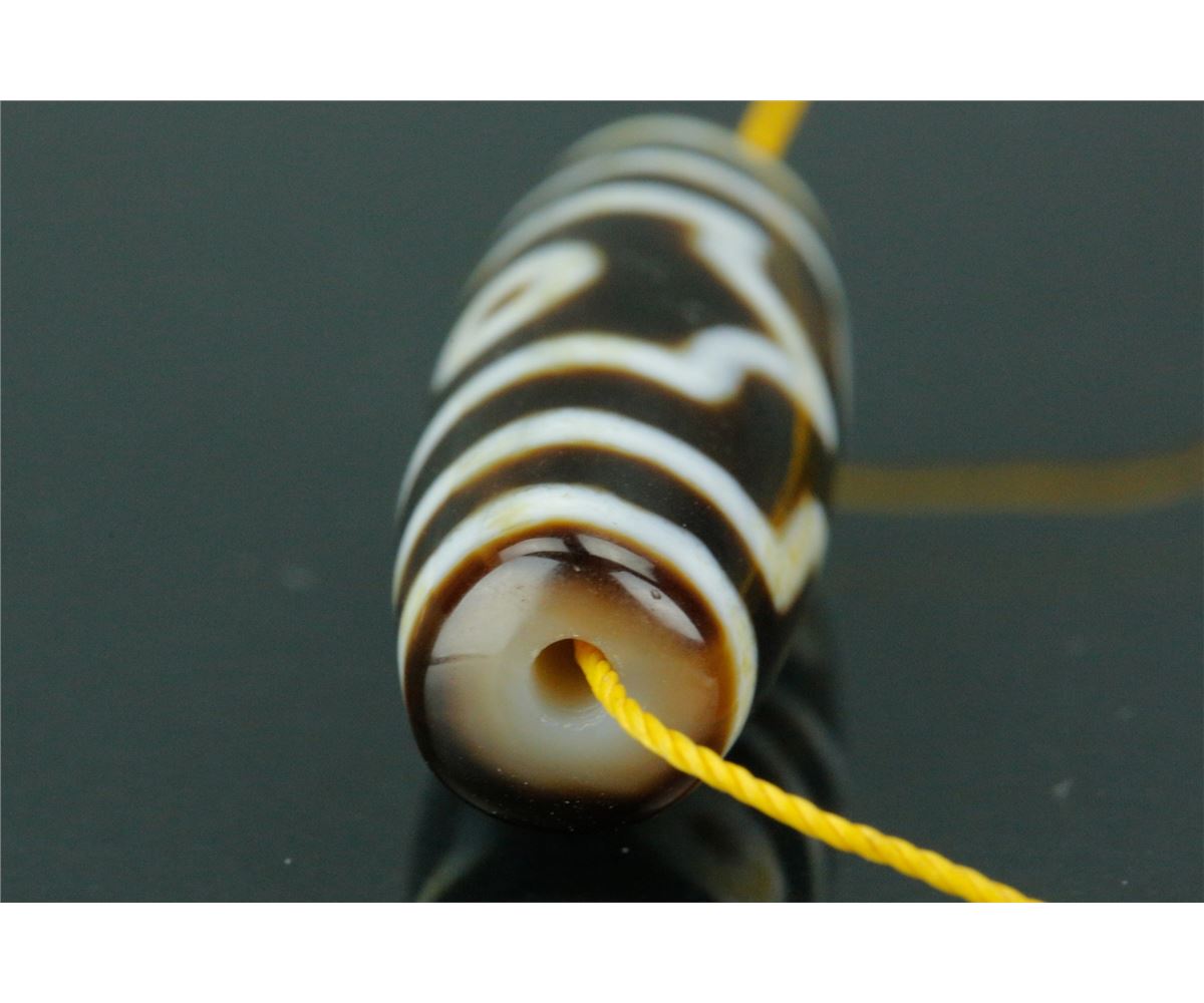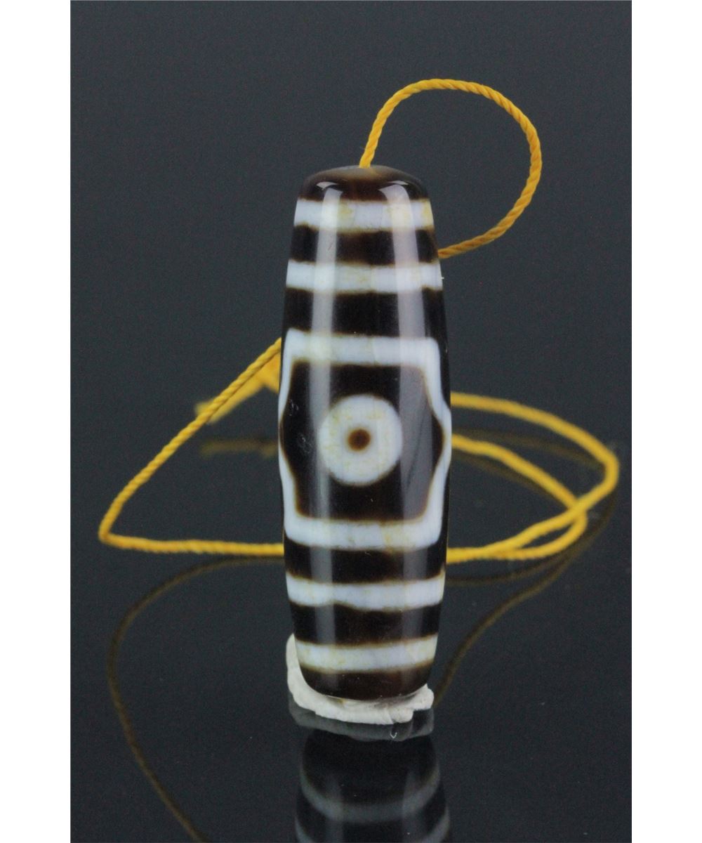 Chinese Tianzhu pendant; of elongated oval form; featuring three eyes and white strips on brown ground; W: 1 cm, L: 4.5 cm, 12 grams