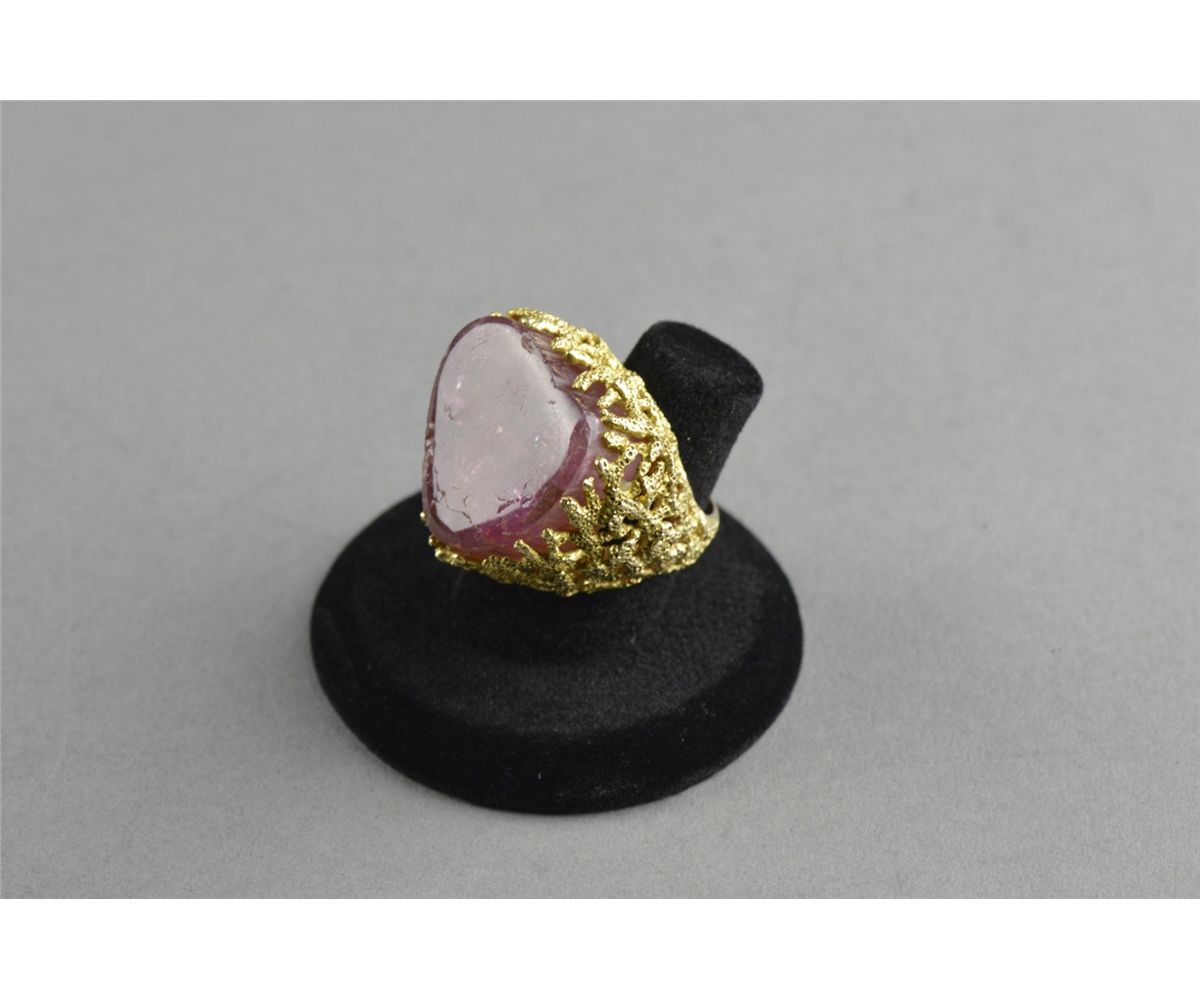Chinese tourmaline ring in the shape of a heart with 14K gold band; L: 3 cm, W: 3 cm, 26 grams; Provenance: Lau Collection Hong Kong 1970's