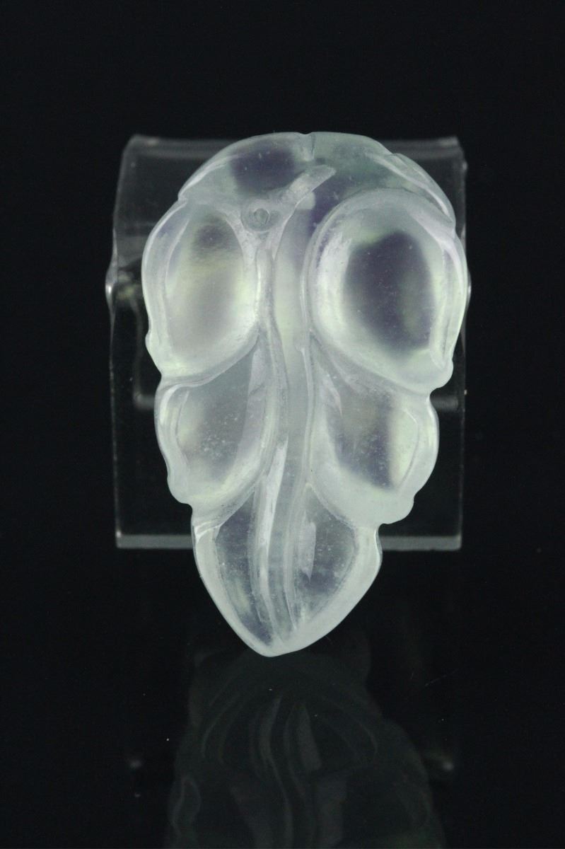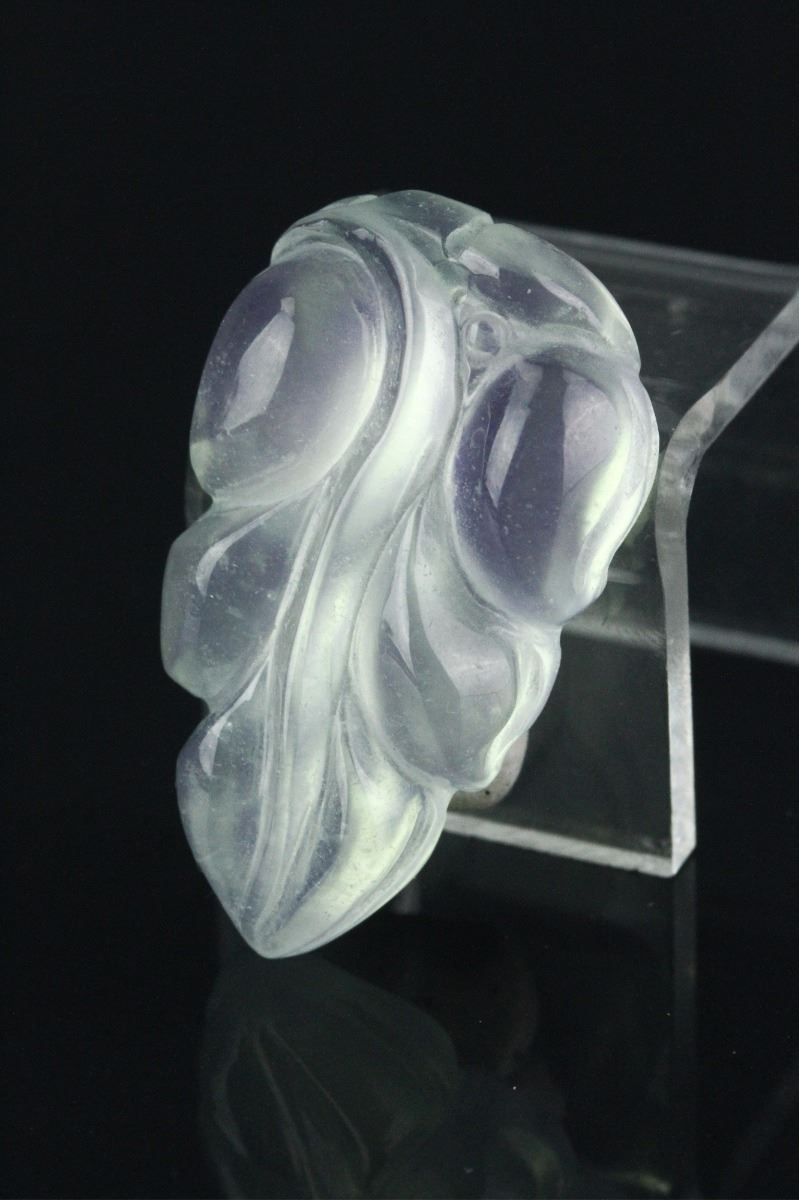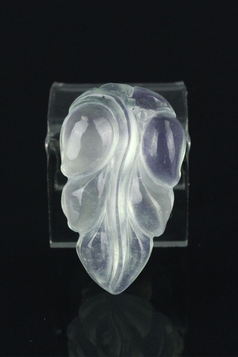 Chinese jadeite pendant; of leaf form; of translucent pale green tone; pierced for suspension; H: 4 cm, W: 2 cm, 15 grams; Density: 3.31