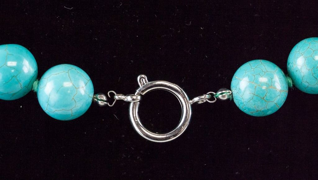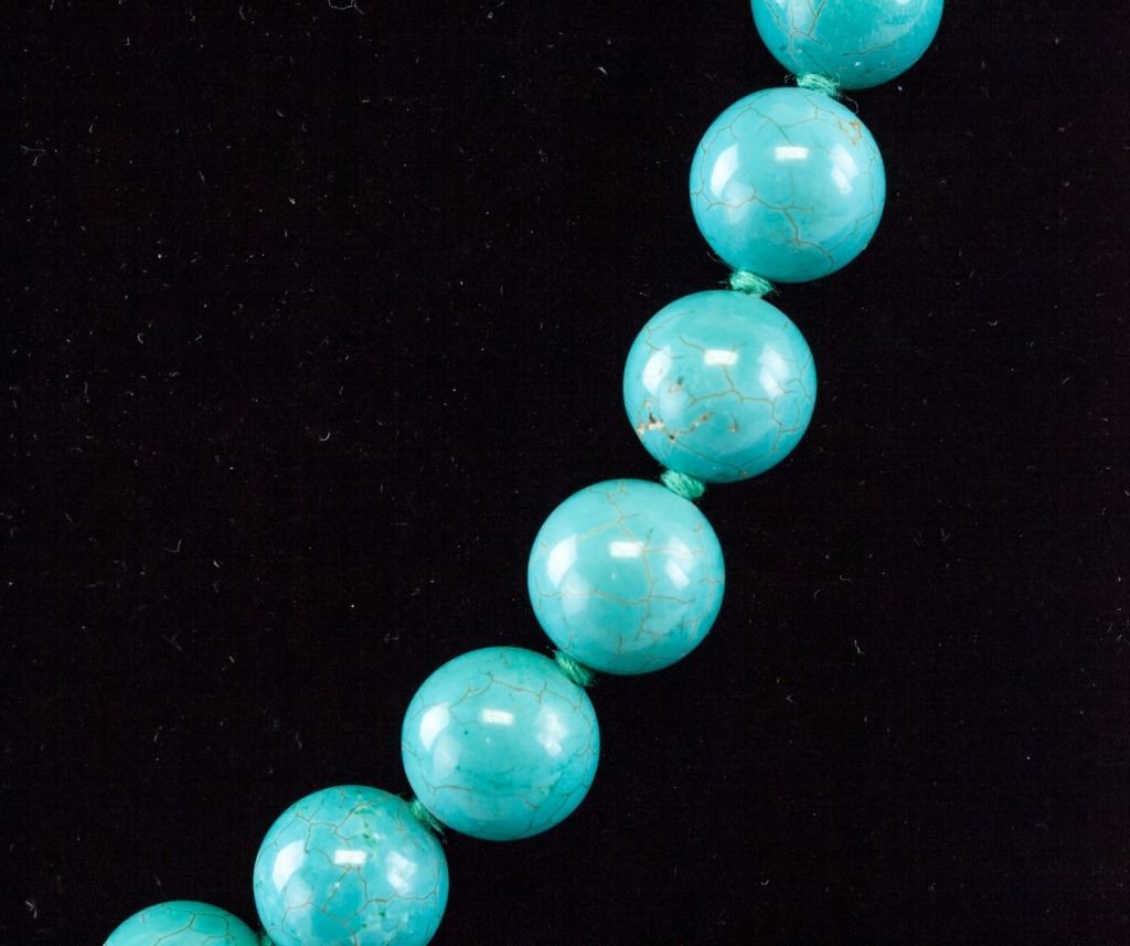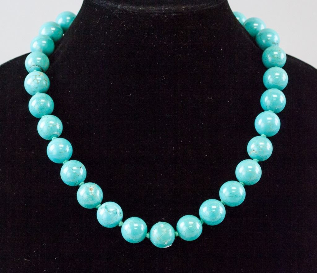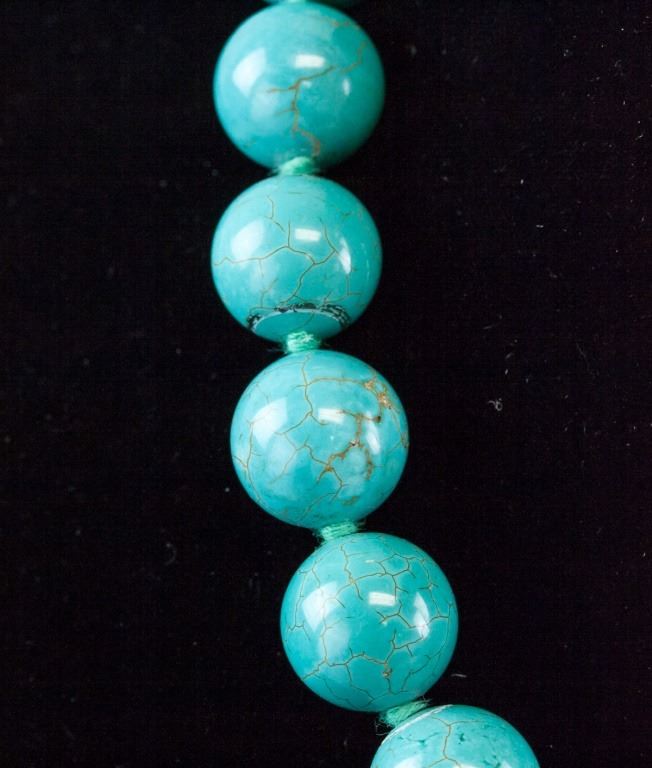 Chinese turquoise bead necklace. Of rounded blue beads. Diameter: 18 cm, 159 grams.