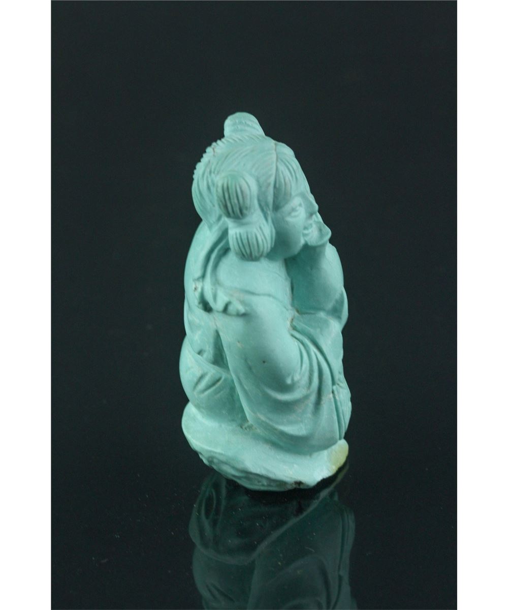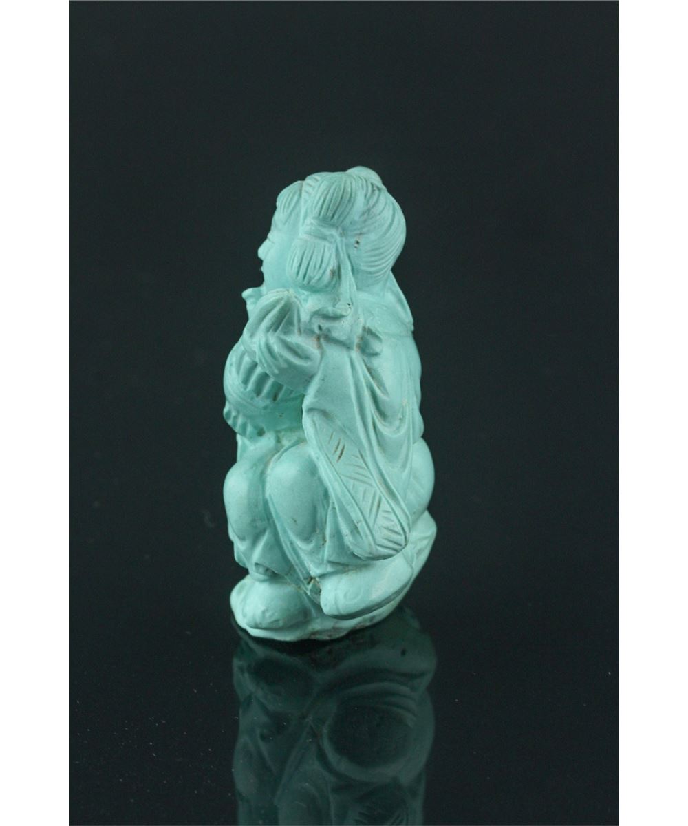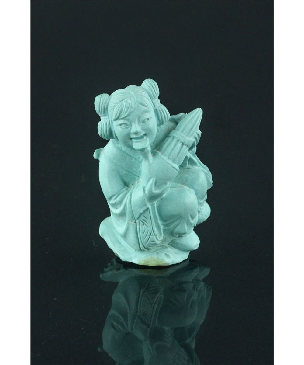 Chinese turquoise carved toggle; featuring a beautiful girl playing musical instrument; H: 5.5 cm, W: 4 cm, 56 grams