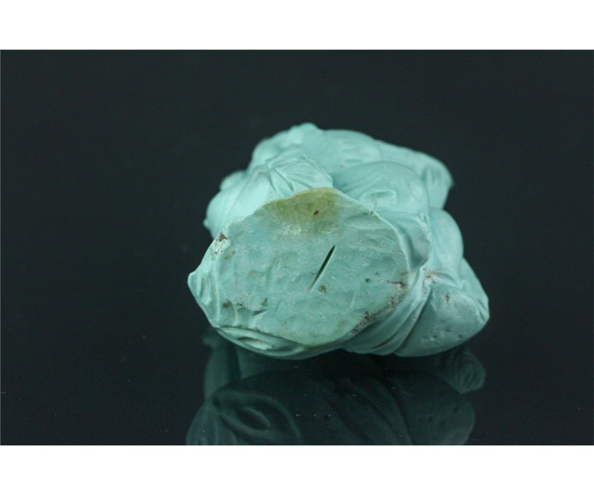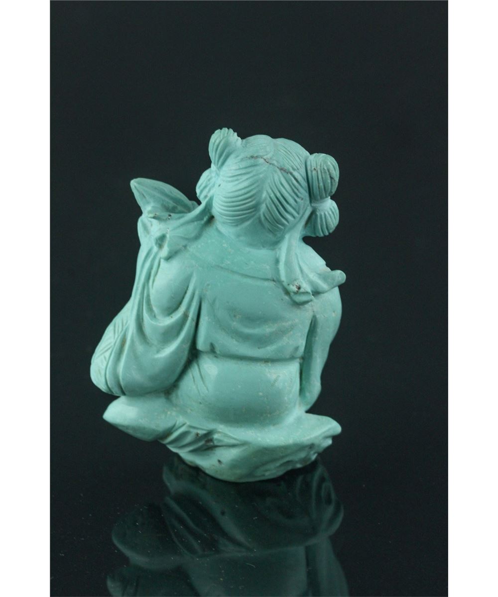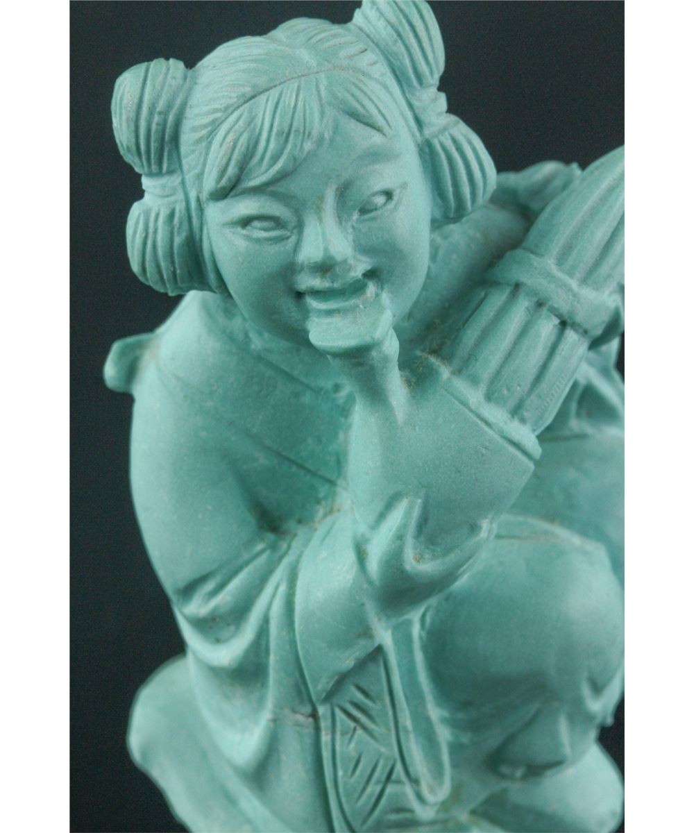 Chinese turquoise carved toggle; featuring a beautiful girl playing musical instrument; H: 5.5 cm, W: 4 cm, 56 grams