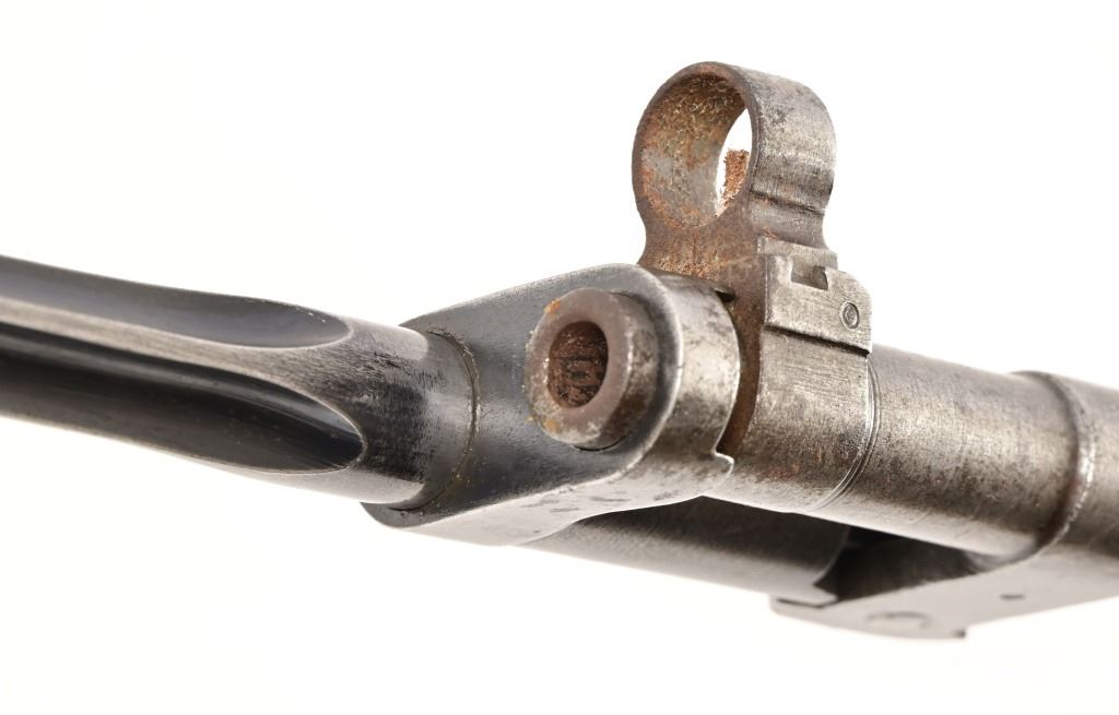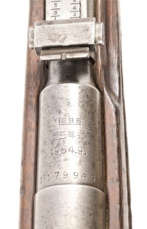SN 1179968. Chinese copy of Russian Nagant M44 carbine. Dated 1954, 21" barrel, rough bore. No caliber markings but should be 7.62x54. Folding bayonet, some minor rust areas. Modern.