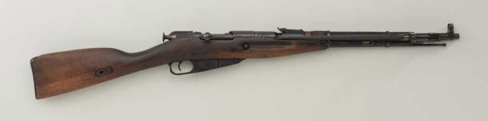 Chinese Type 53 copy of a Soviet Mosin-Nagant bolt-action carbine with folding bayonet, 7.65mm cal., 20-1/2” barrel, wood stock, #1018072. This gun is in overall well-used fair condition with a heavy dark patina, fair bore, good action; fair wood with scattered staining, etc. Est.: $125-$250.