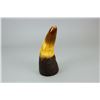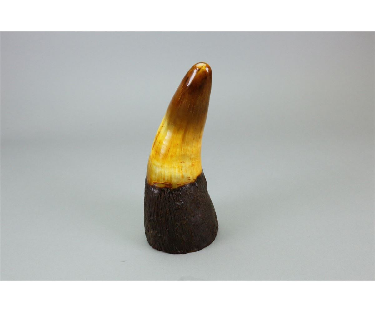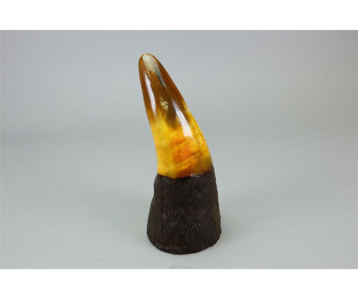 Chinese uncarved horn; sealed on bottom; brown tone at top thinning to yellow at bottom; H: 20 cm, D: 10 cm, 469 grams