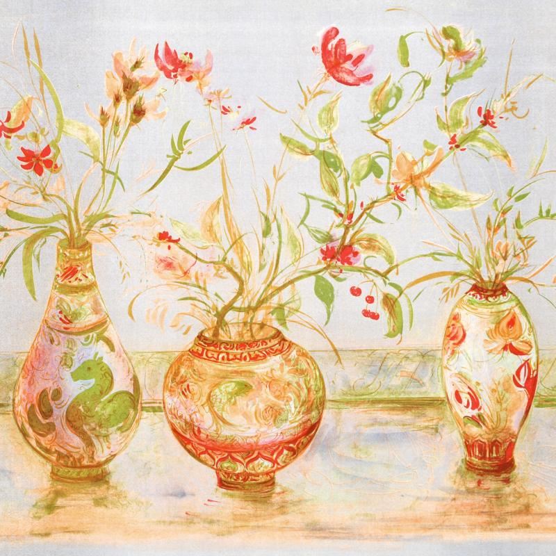"Chinese Vase" is a limited edition lithograph on paper, numbered and hand signed by Edna Hibel (1917-2014). Includes Certificate of Authenticity! Measures approx. 44" x 31" (with border), 42" x 29.5" (image). ** Please note: there is wear (creasing) to the corners that may be concealed when framed. **