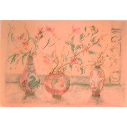 <tr><td>Title:Chinese Vases Flowers litho by Edna Hibel</td></tr>