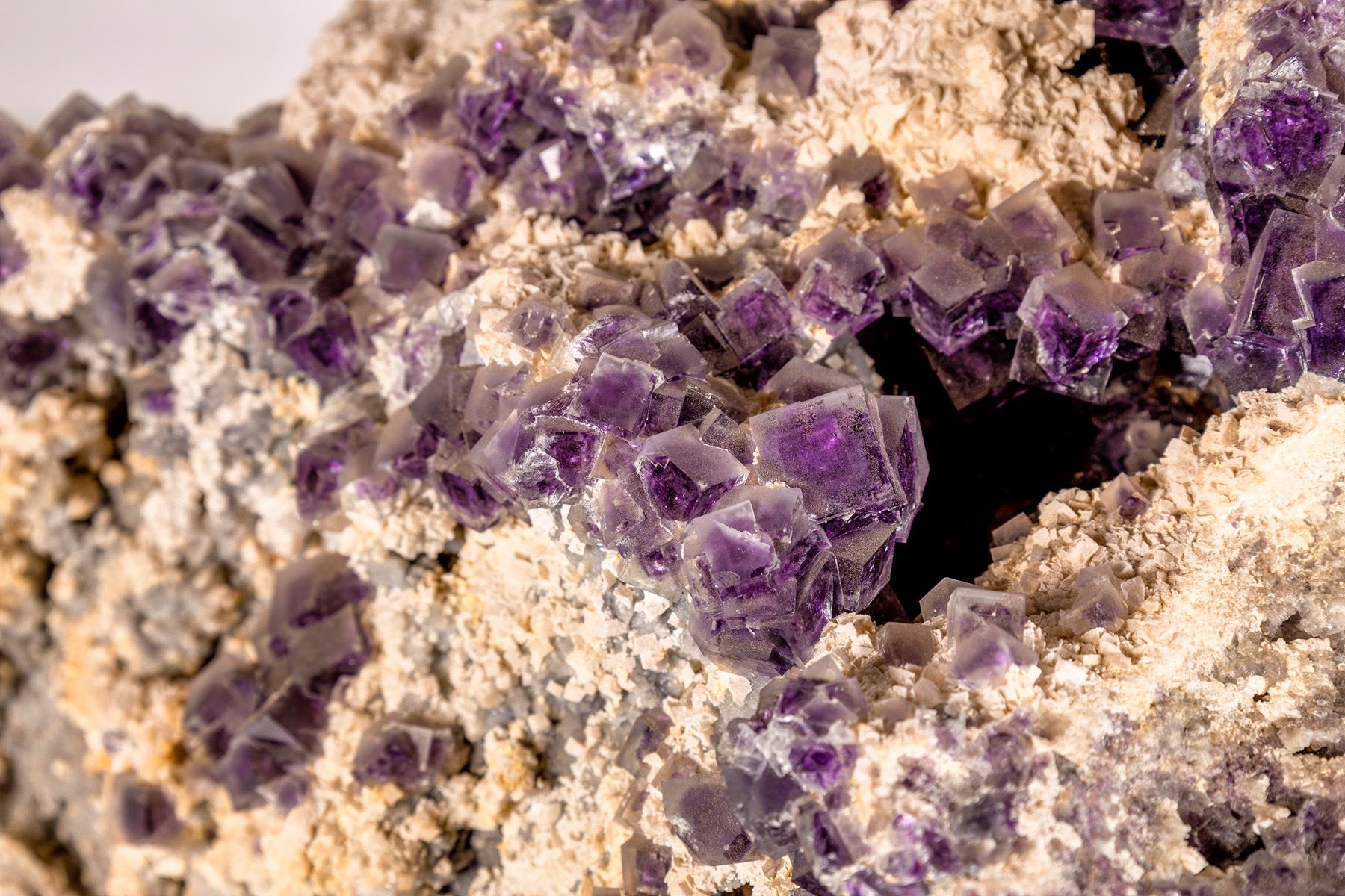 Might qualify as a Chinese viewing stone because of its size. This is one big specimen of deep purple fluorite cubes with faces up to an inch across. Possibly from the Shang Hua Ling Mine in Hunan Province. No base with this specimen. See photos for details. City: State:Hunan Province Date: