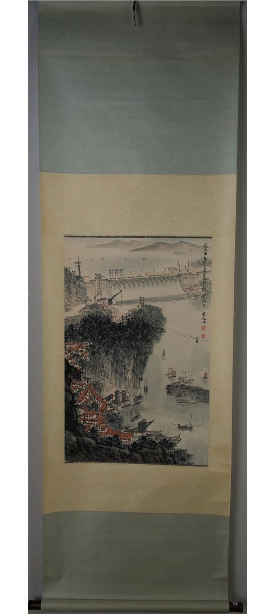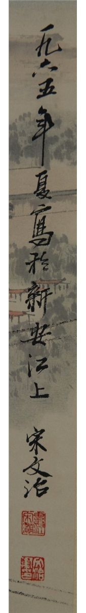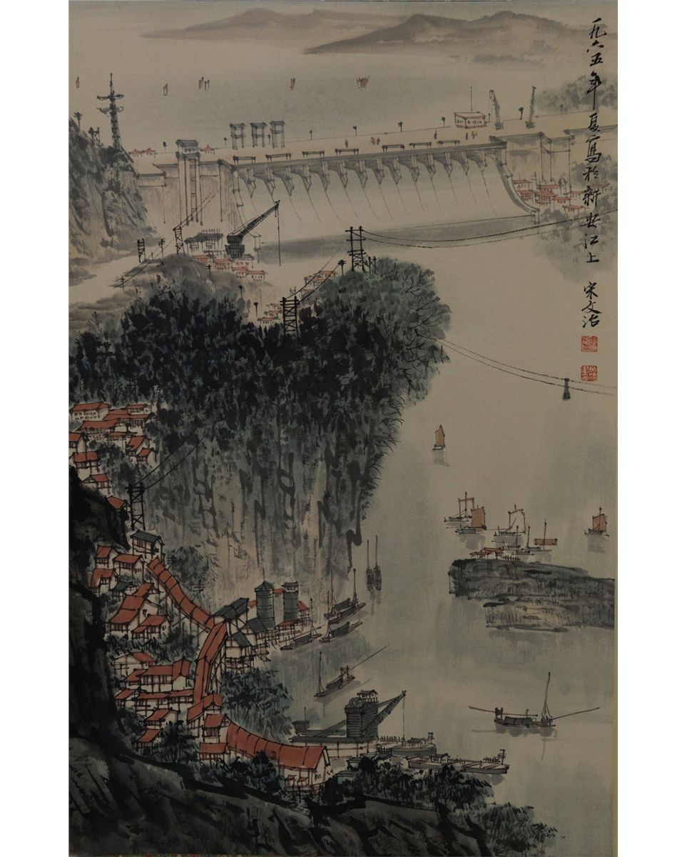 Modern village scene, hanging scroll, Chinese ink and watercolour on paper, signed Song Wenzhi (1919-1999) with two seals, dated 1968. 43 cm x 69 cm.