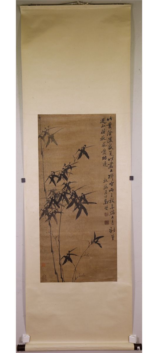 Bamboo; Chinese ink on paper; hanging scroll; signed Zheng Banqiao and inscribed with four artist seals; 96 cm x 45 cm