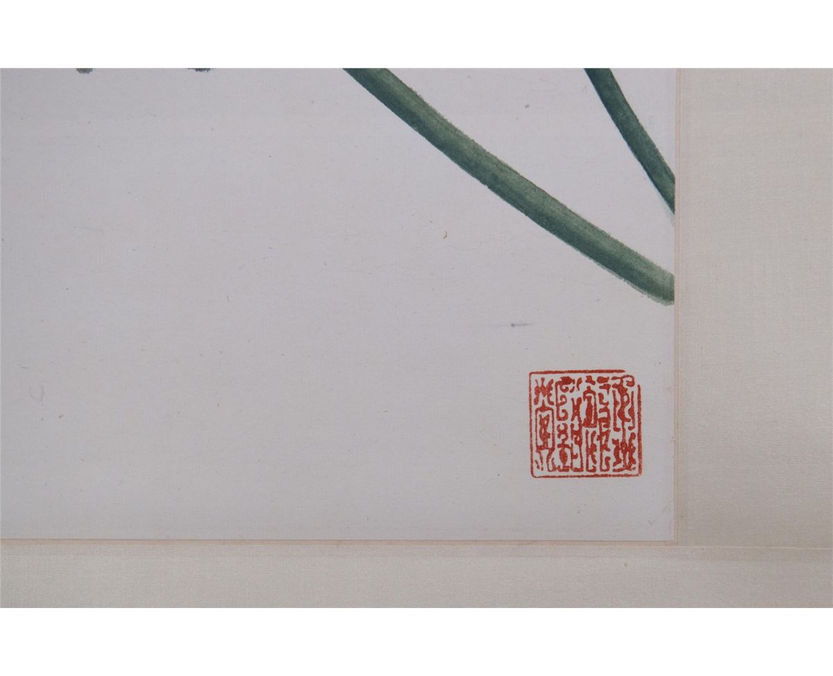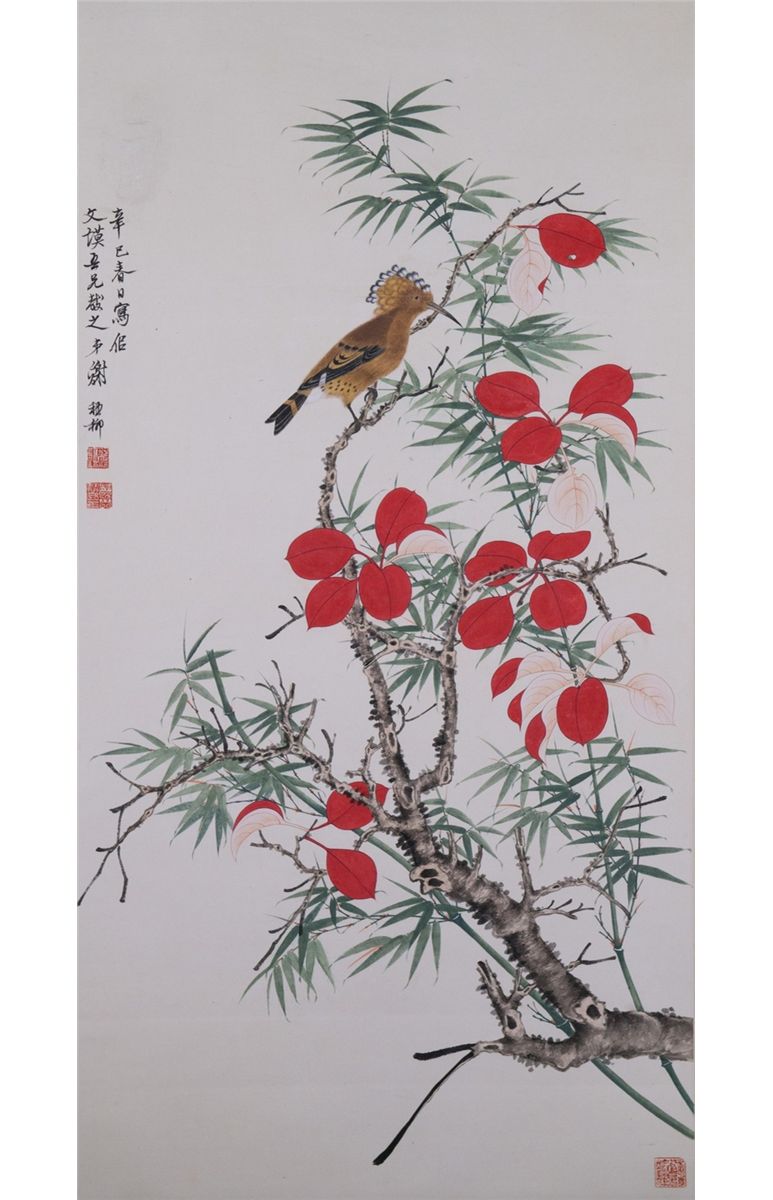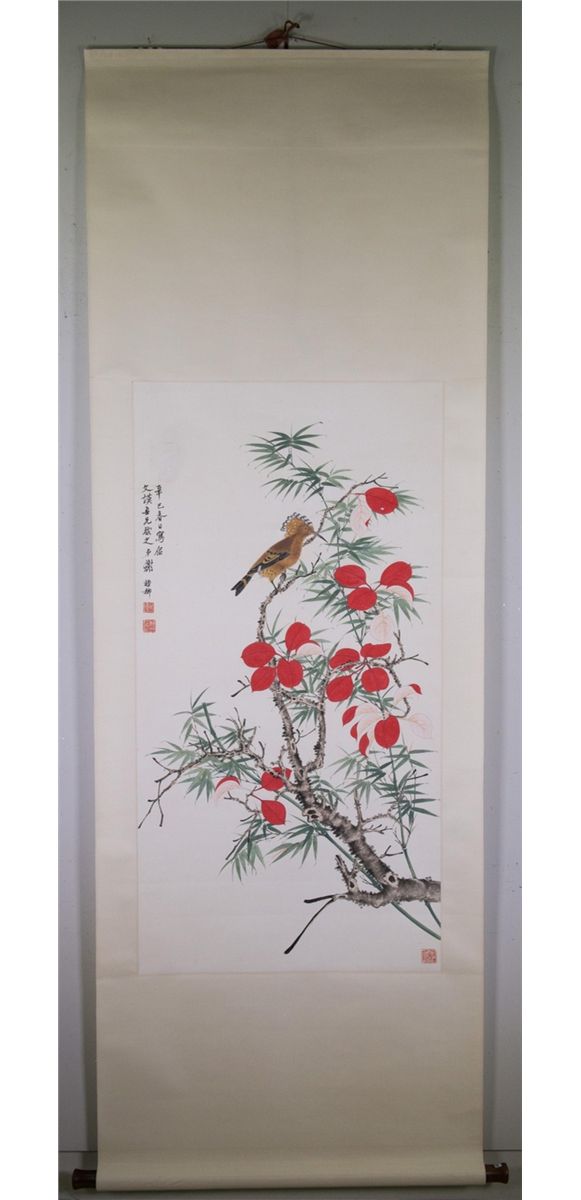 Flowers and bird; Chinese ink and watercolour on paper; hanging scroll; signed Xie Zhiliu (1910-1997) and inscribed with three artist seals; 117 cm x 58 cm
