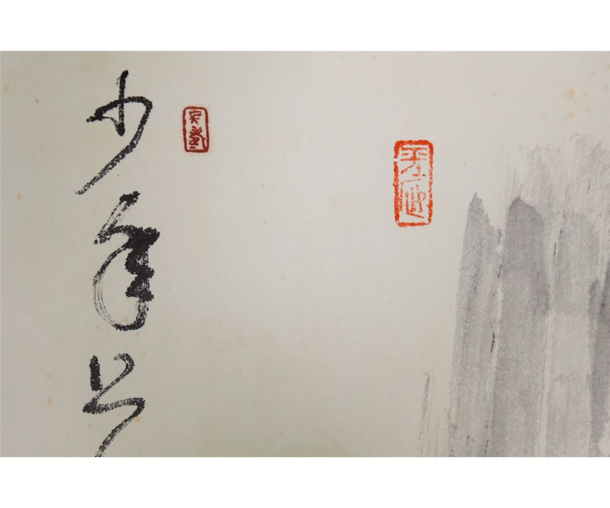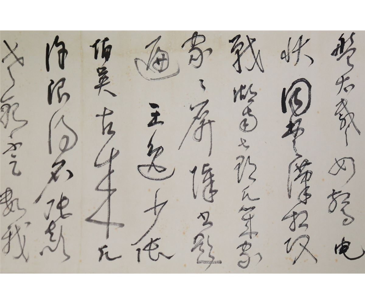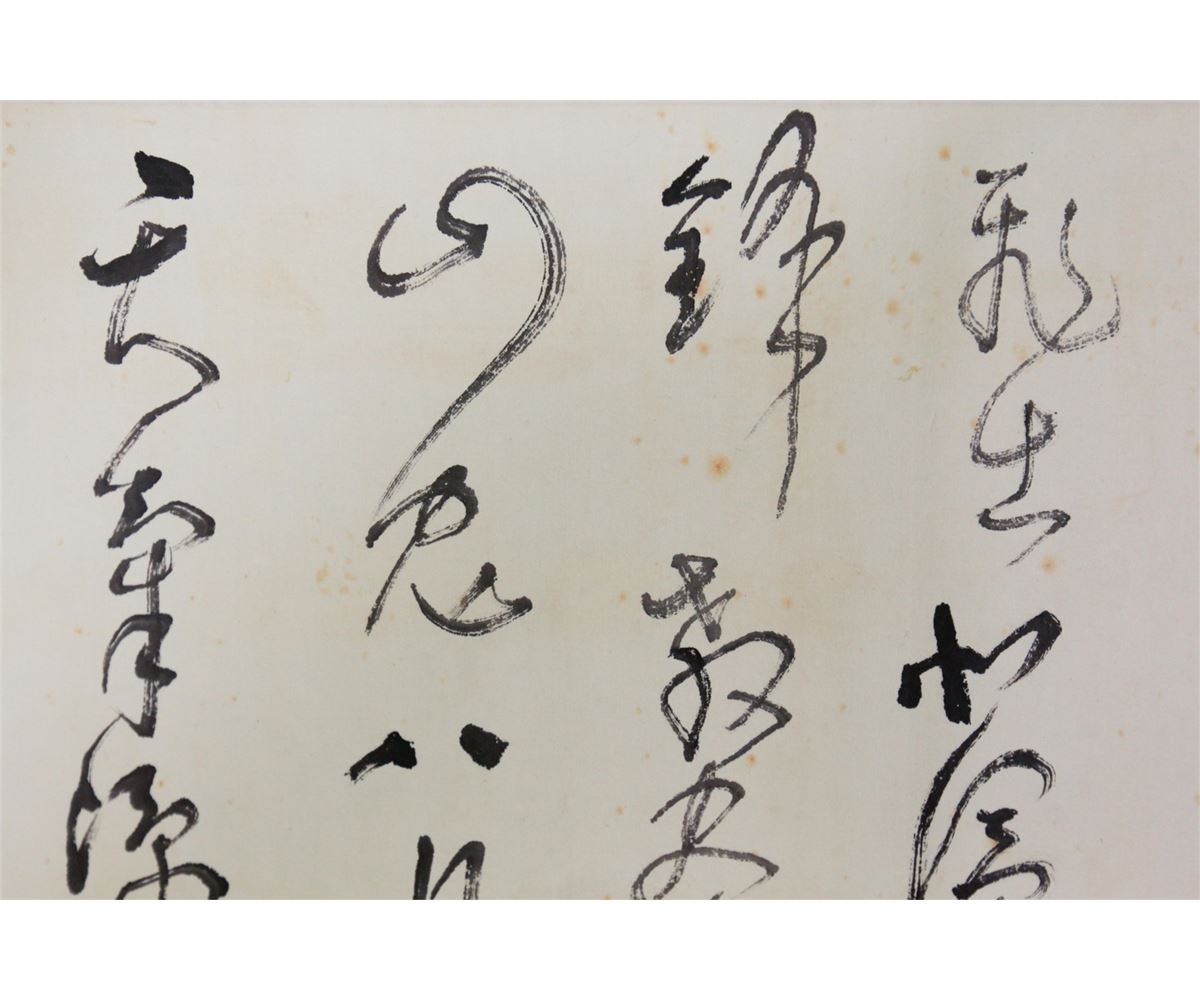 Portrait of an old man and cursive script calligraphy; Chinese ink and watercolour on paper; hand scroll; signed Lin Sanzhi and inscribed with three artist seals; 32.5 cm x 274 cm, 30 cm x 66.5 cm