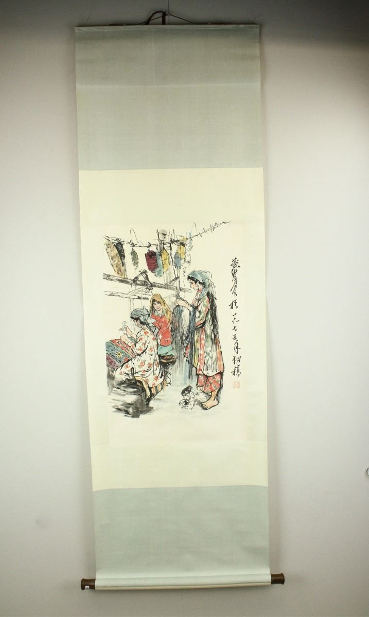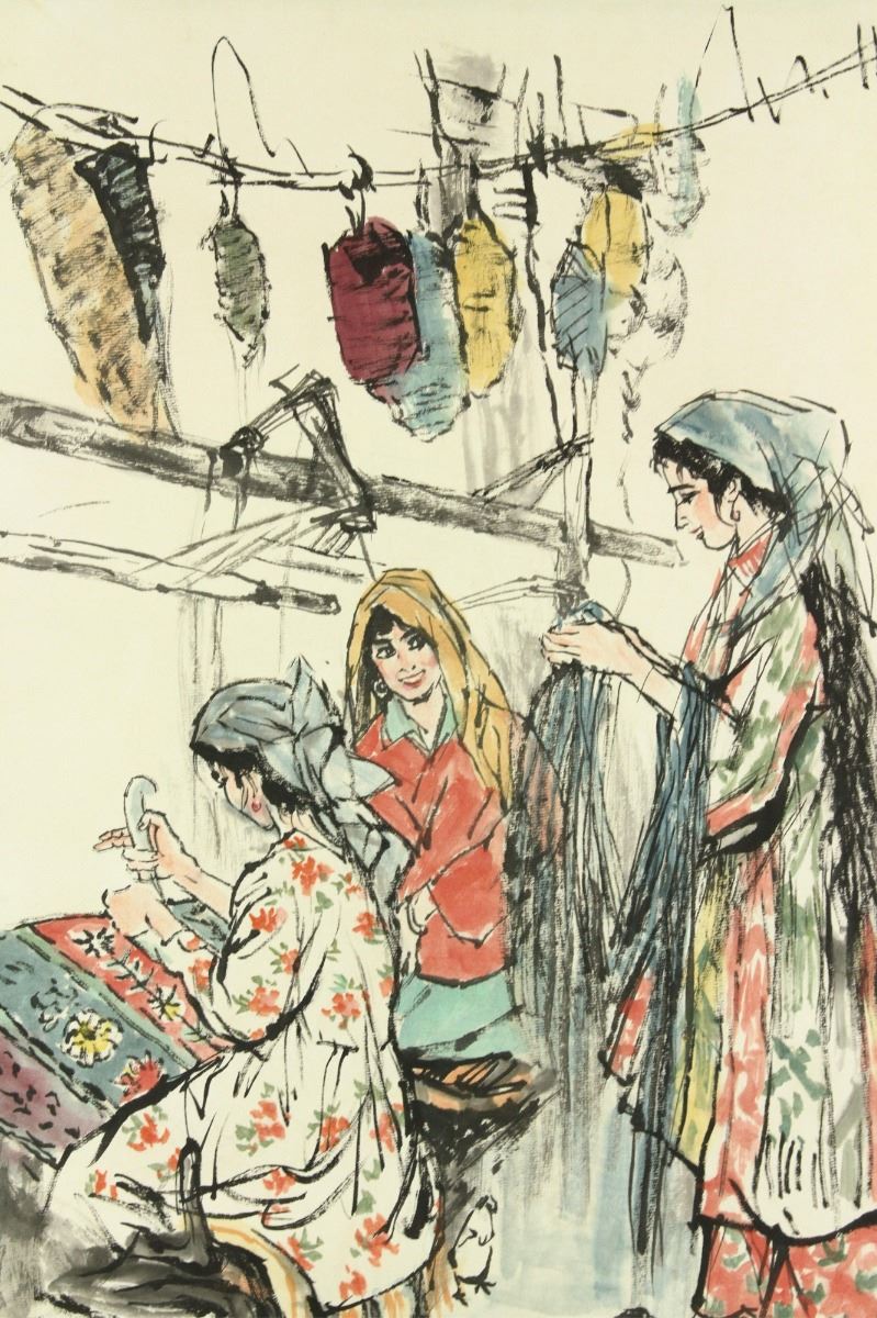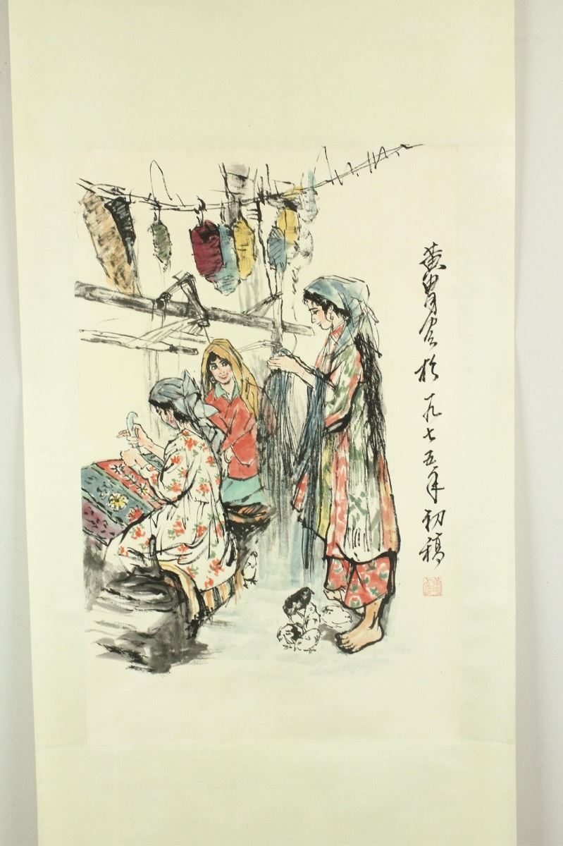 Turbaned women; Chinese ink and watercolour on paper; hanging scroll; signed Huang Zhou and inscribed with one artist seal; 72 cm x 44 cm