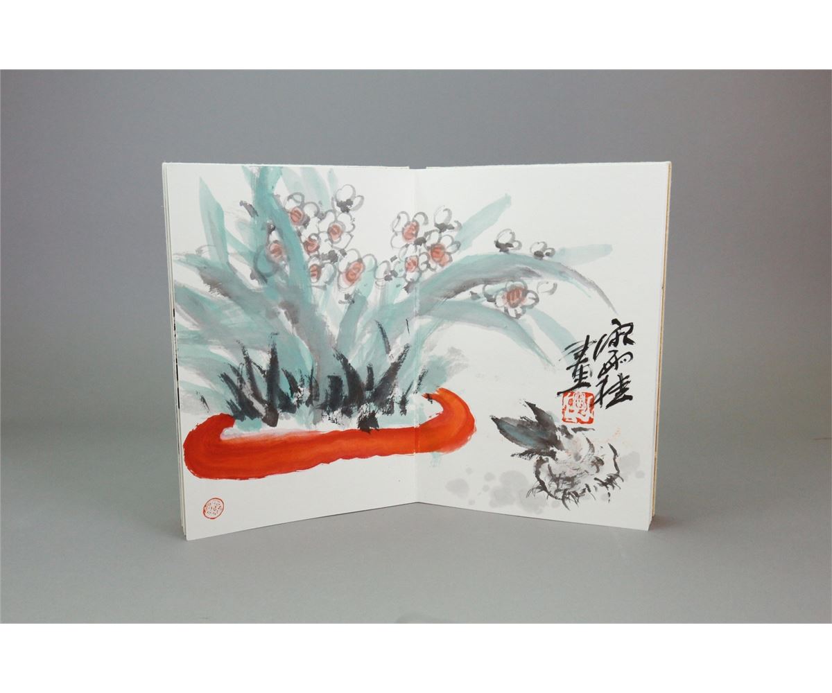 Flowers, plants and fruits; Chinese ink and watercolour on paper booklet; signed Song Yujia and inscribed with two artist seals; 25 cm x 17 cm