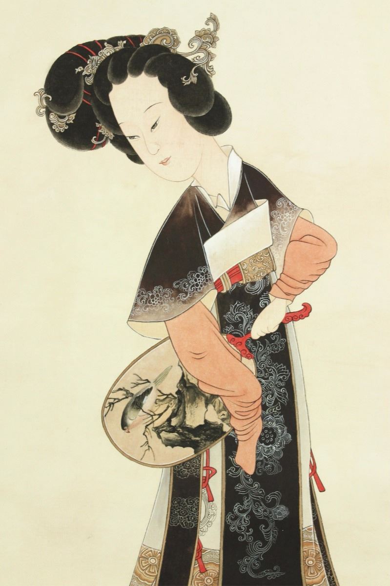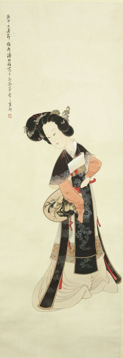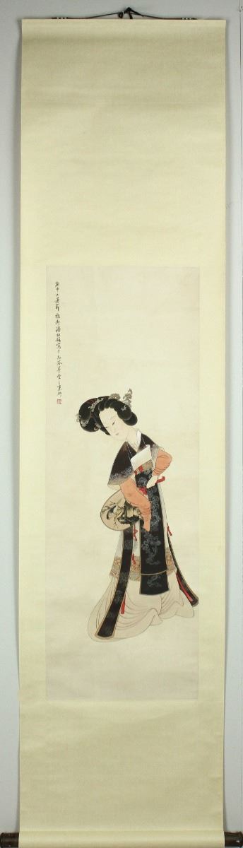 Lady figure; Chinese ink and watercolour on paper; hanging scroll; signed Pan Zhengyong and inscribed with one artist seal; 94 cm x 33 cm