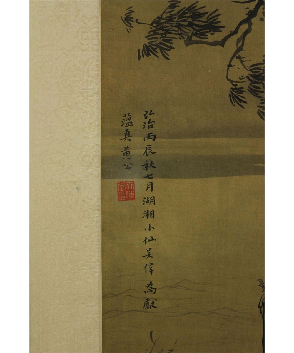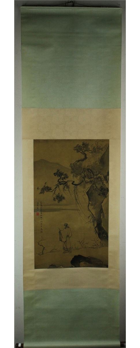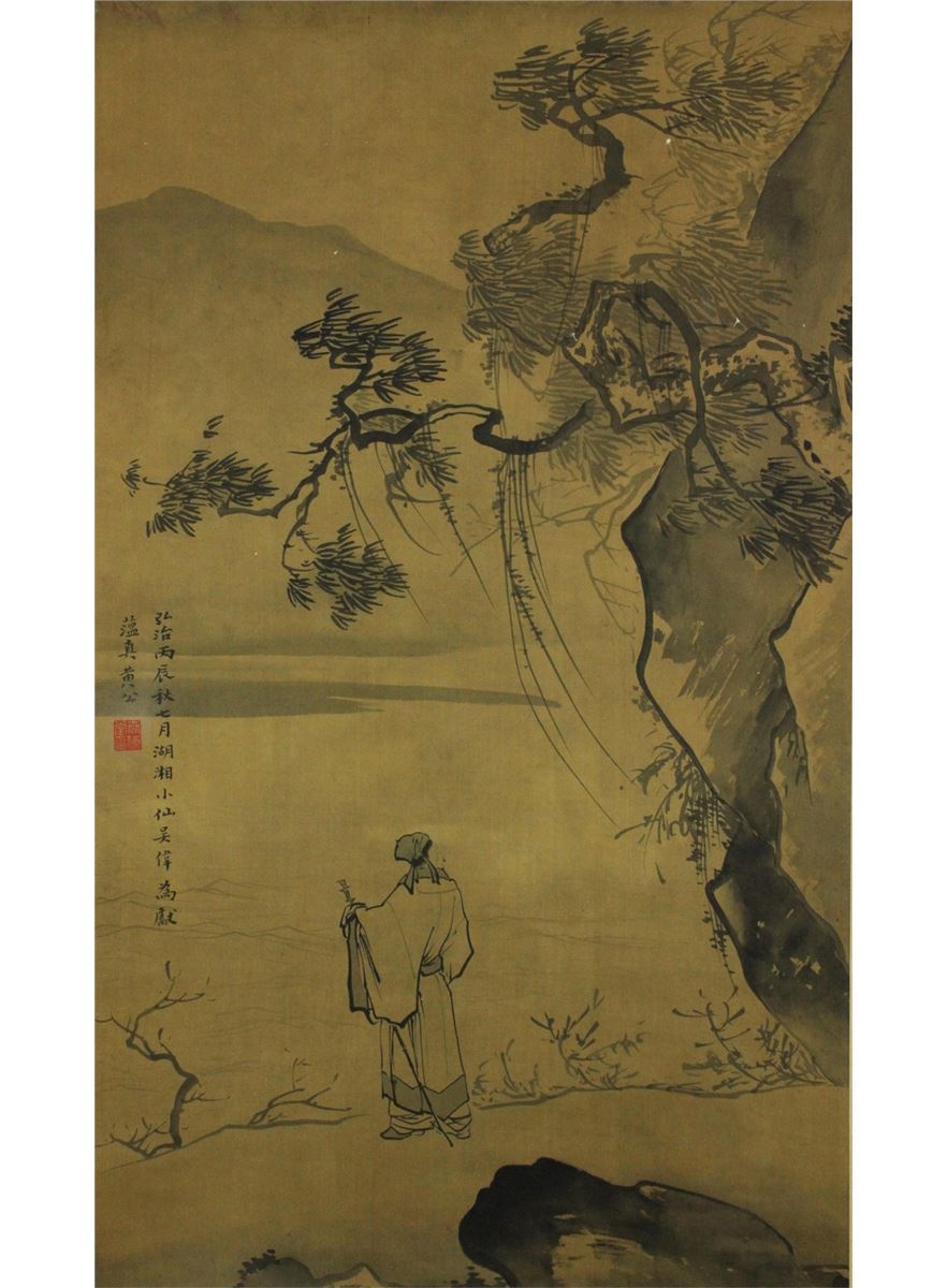 Figure and landscape; Chinese ink and watercolour on paper; hanging scroll; signed Wu Wei and inscribed with one artist seal; 74 cm X 43 cm