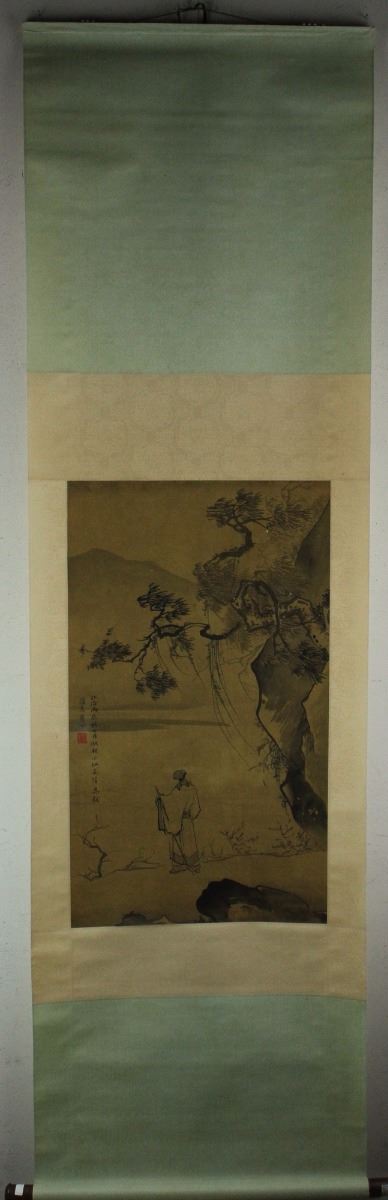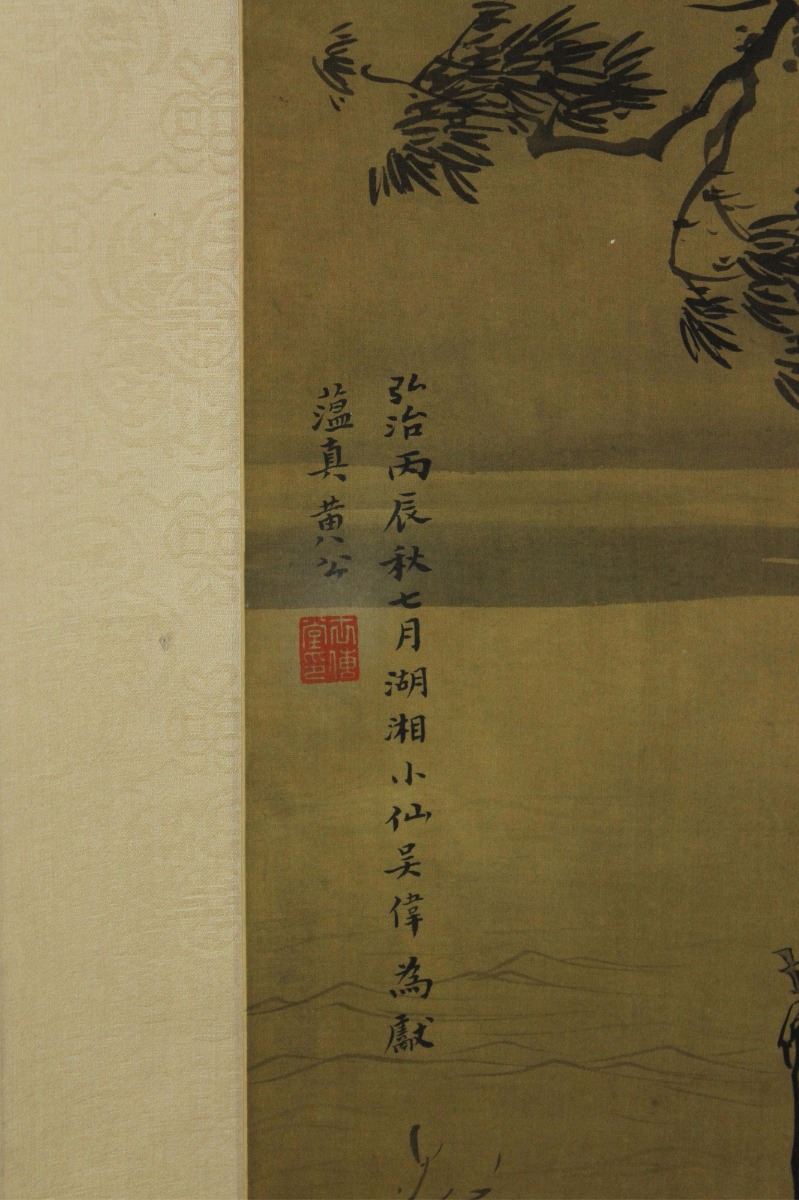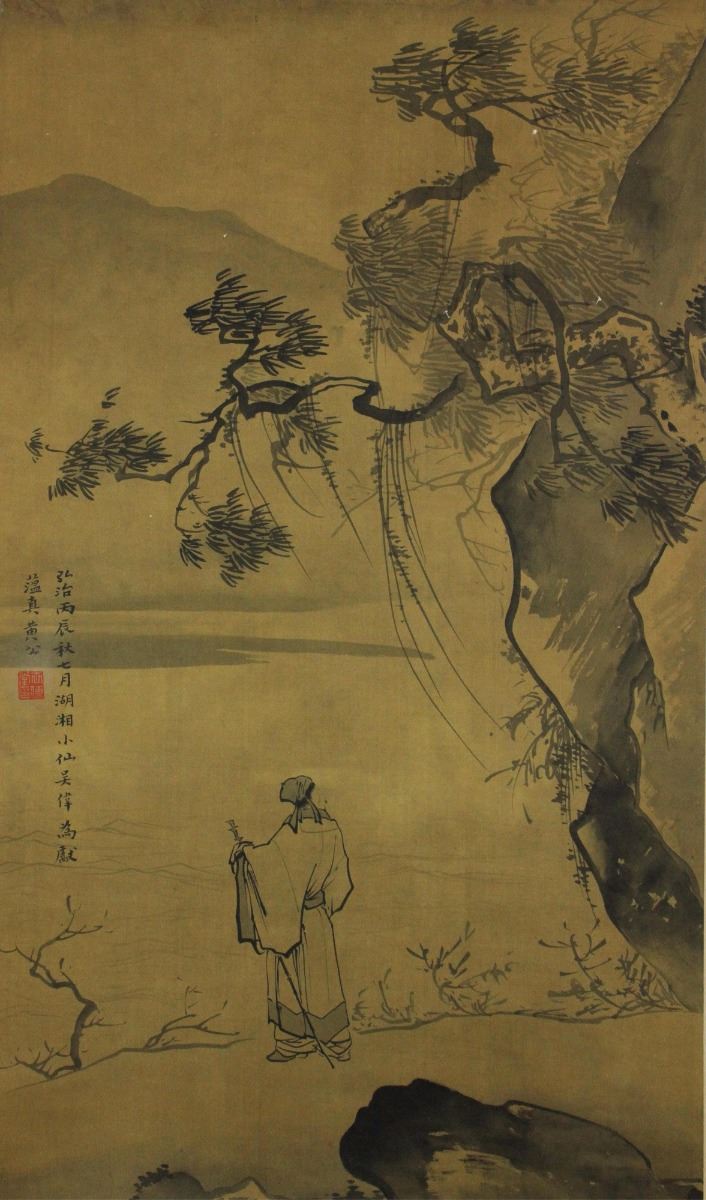 Figure and landscape; Chinese ink and watercolour on paper; hanging scroll; signed Wu Wei and inscribed with one artist seal; 74 cm X 43 cm