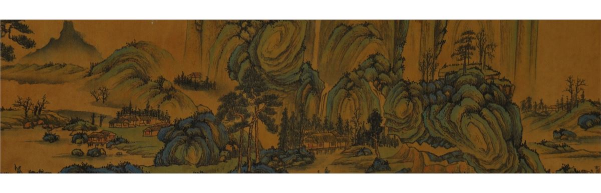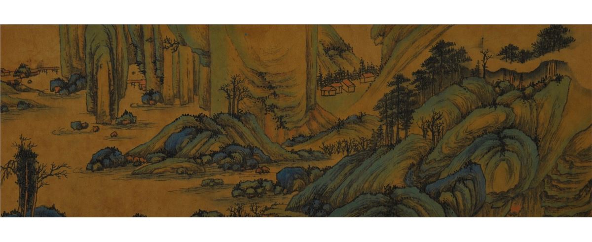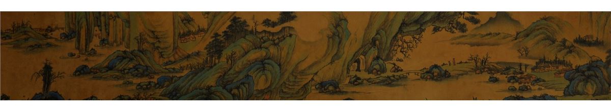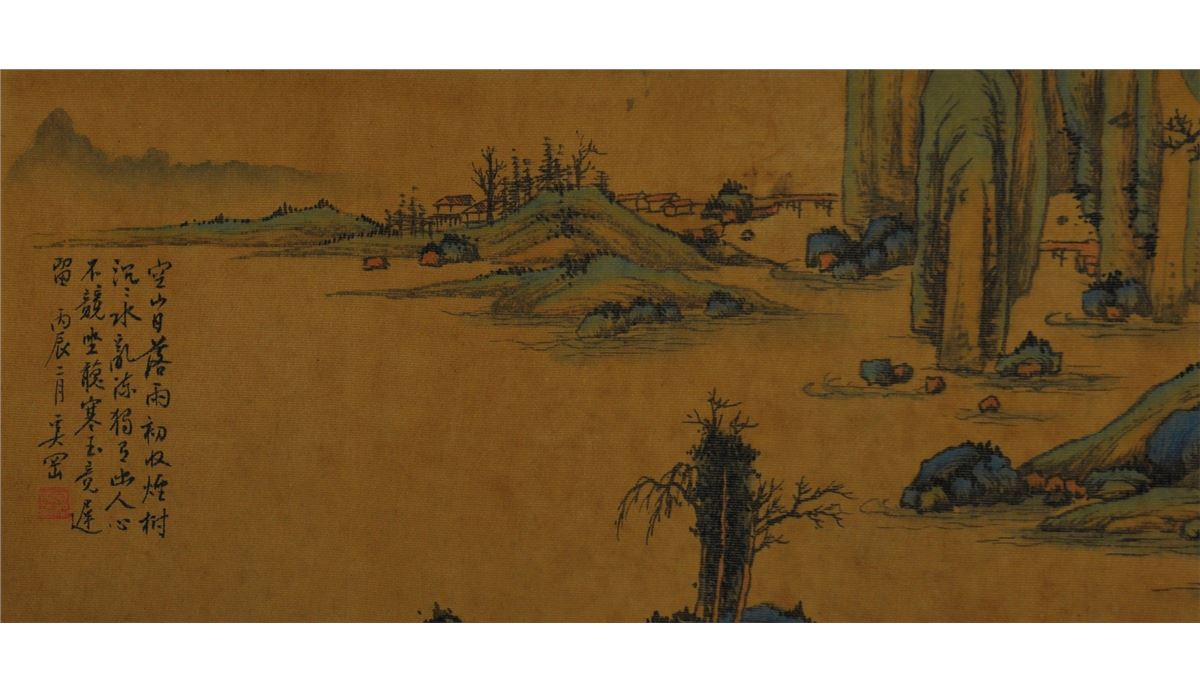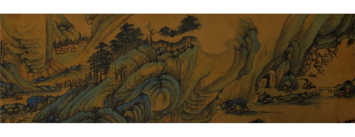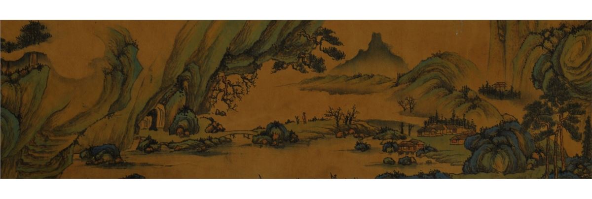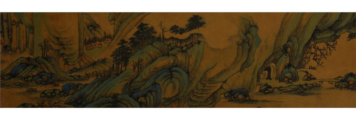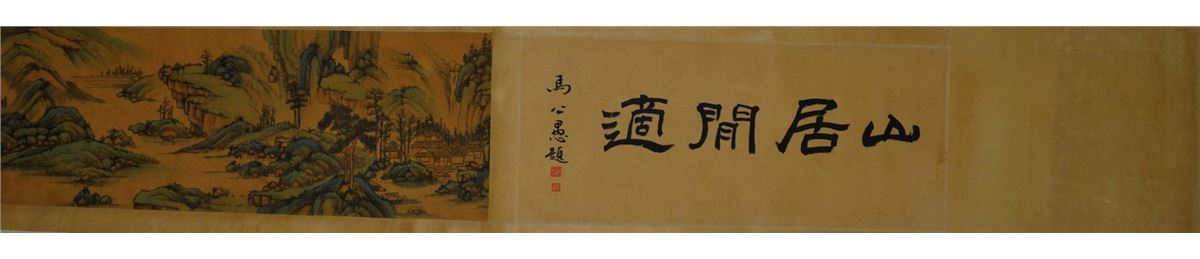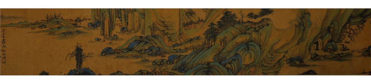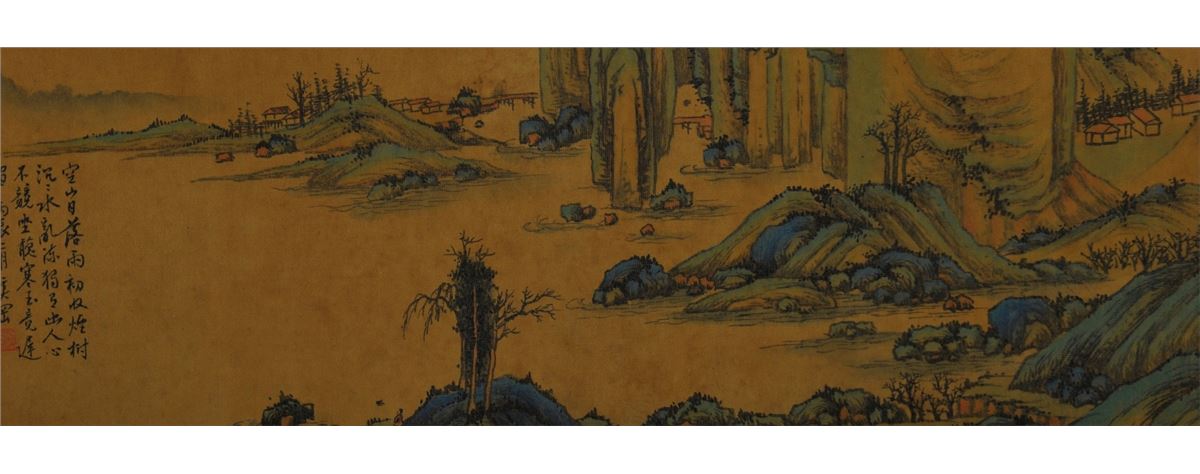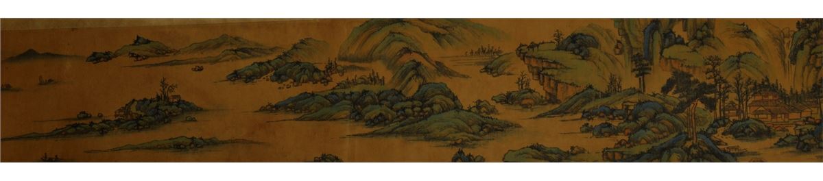 Hand scroll, Chinese watercolour painting, ink and colour on paper: landscape; signed Lu Yanshao 1909-1993, Li Xiongcai, 1910-2001 and Song Wenzhi 1919-1999 ; inscribed and signed with three seals; 22 cm x 403.5 cm .