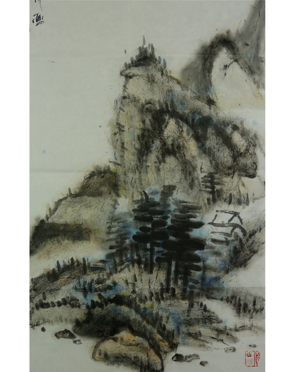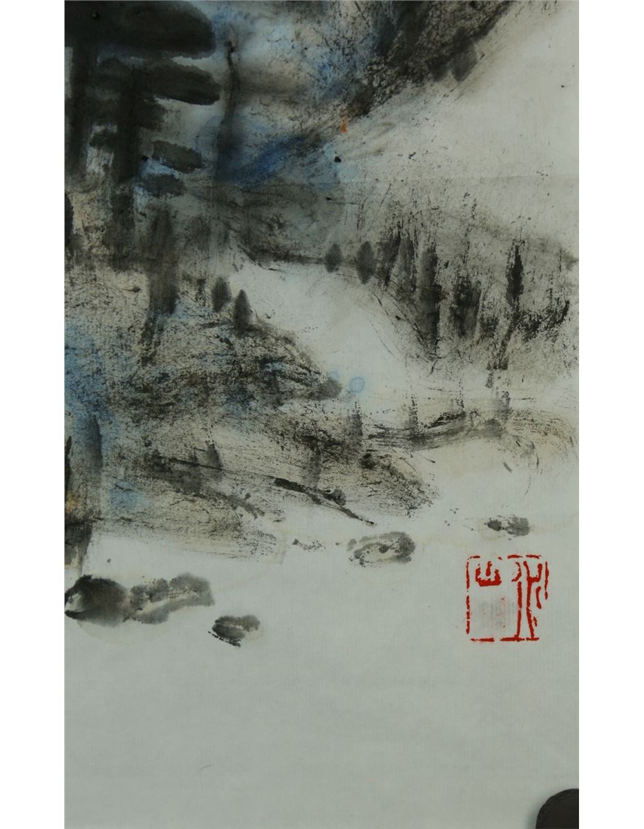 Landscape; Chinese ink and watercolour on paper; signed Luo Pufu and inscribed with two artist seals; 35 cm x 60 cm