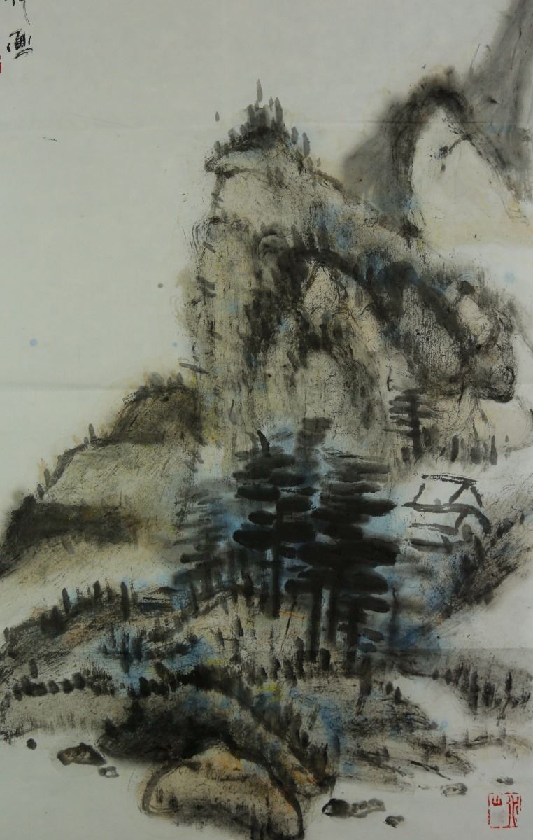 Landscape; Chinese ink and watercolour on paper; signed Luo Pufu and inscribed with two artist seals; 35 cm x 60 cm