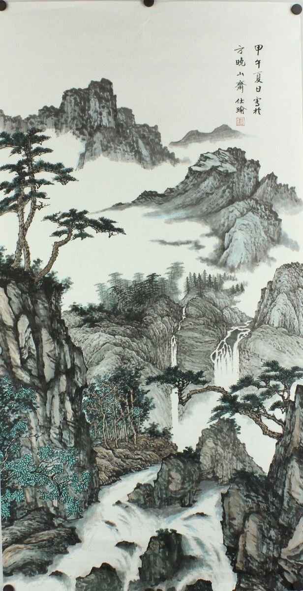 Landscape; Chinese ink and watercolour on paper; signed Liang Shiyu and inscribed with one artist seal; 107 cm x 55 cm