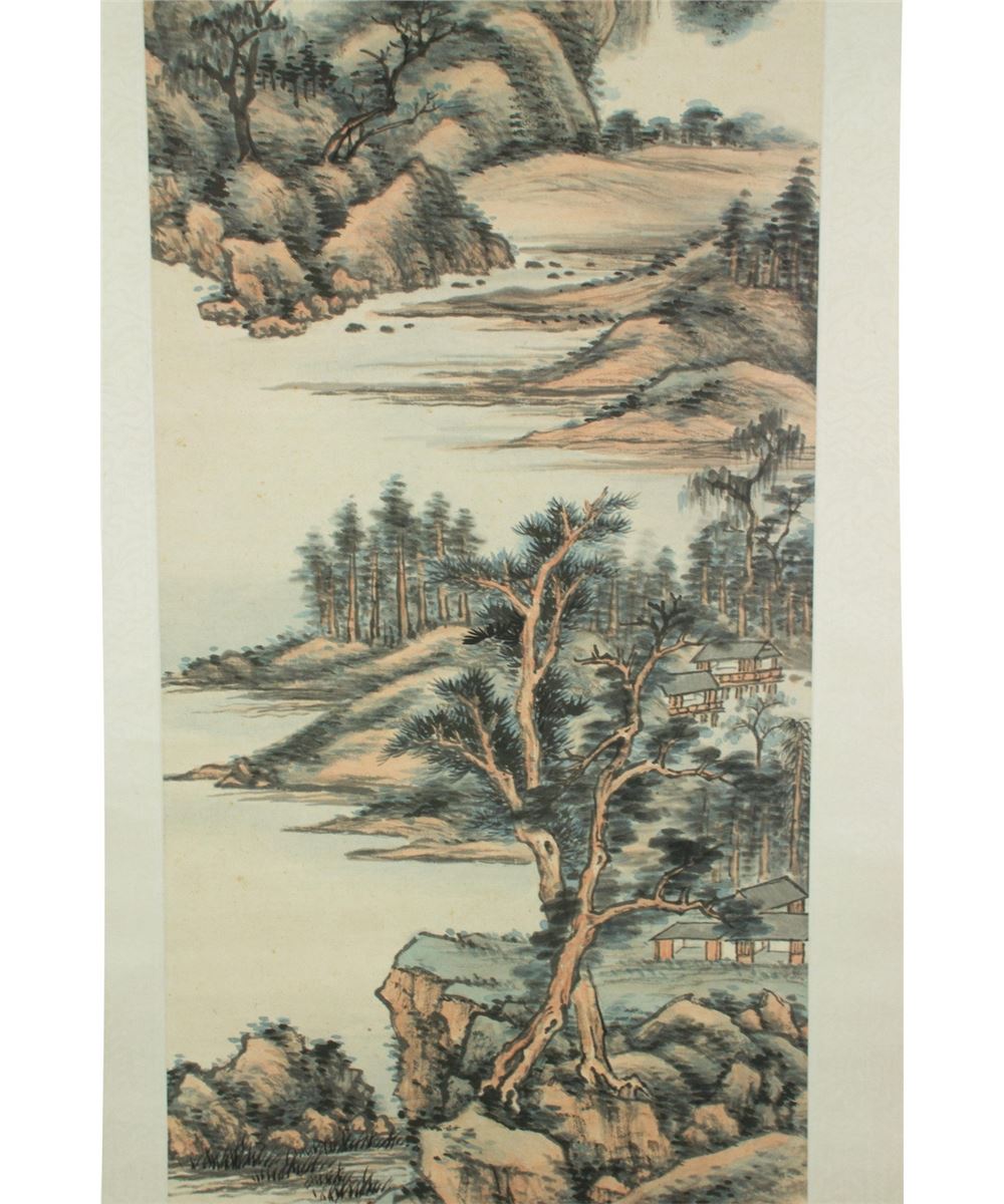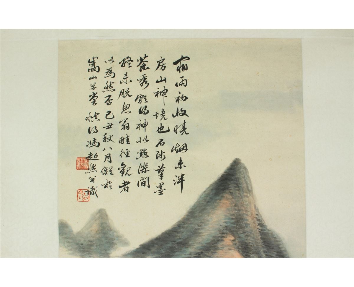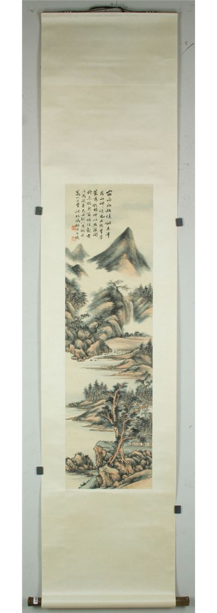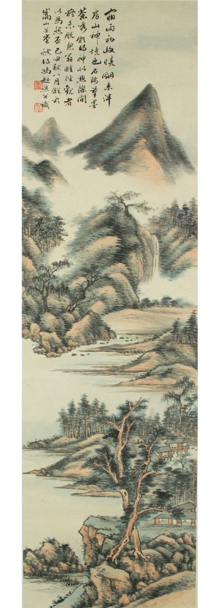 Landscape, hanging scroll, Chinese ink and watercolour on paper, signed and sealed by Feng Chaoran. 123.5 cm X 244 cm.
