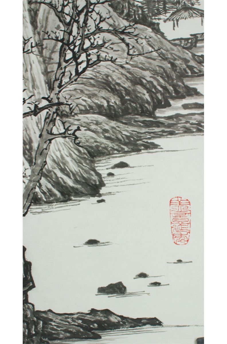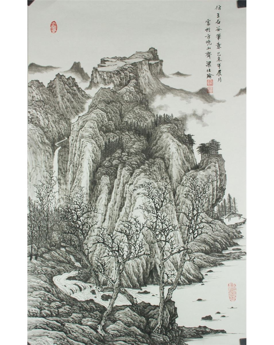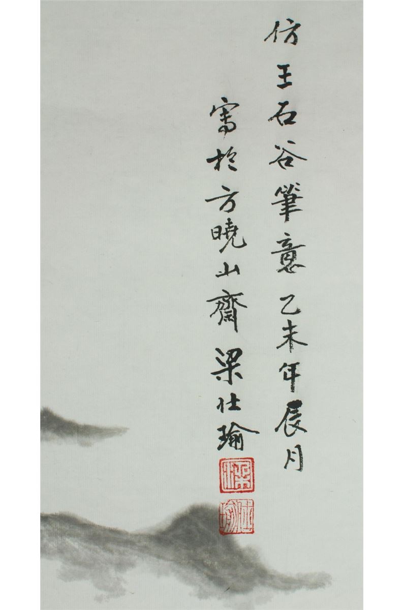 Landscape, Chinese ink and watercolour on paper, signed and sealed by Liang Shiyu. 90 cm X 58 cm.
