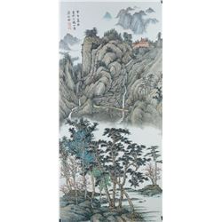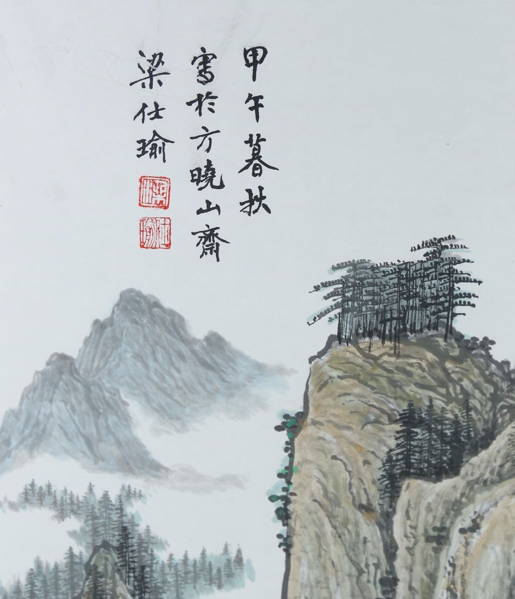 Mountains and forests; Chinese ink and watercolour on paper; signed Liang Shiyu and inscribed with two artist seal; 124 cm x 60 cm