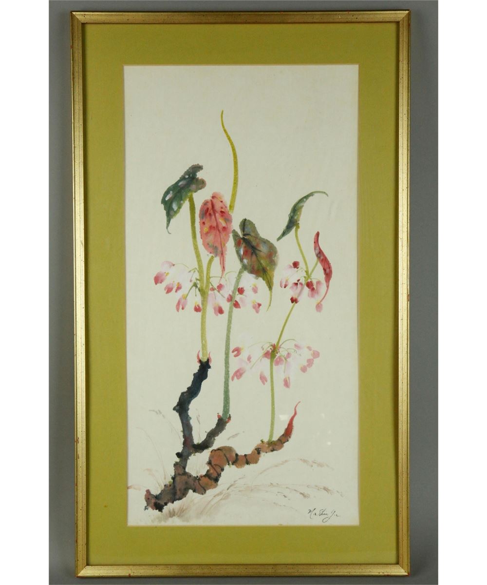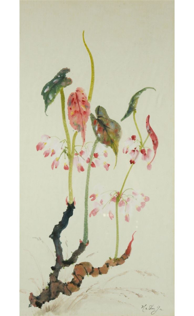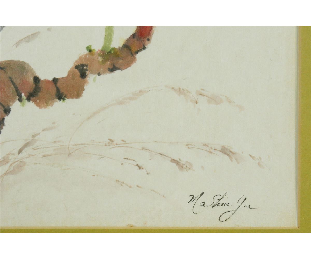 Orchid branches; Chinese contemporary ink and watercolour on paper; signed Ma Shinyu; framed; 69 cm x 40 cm with frame
