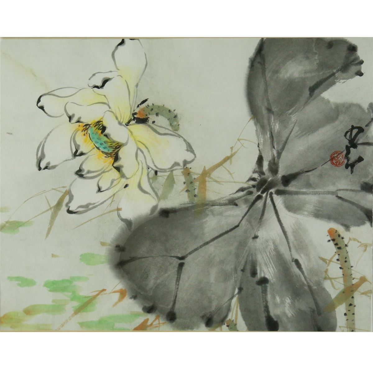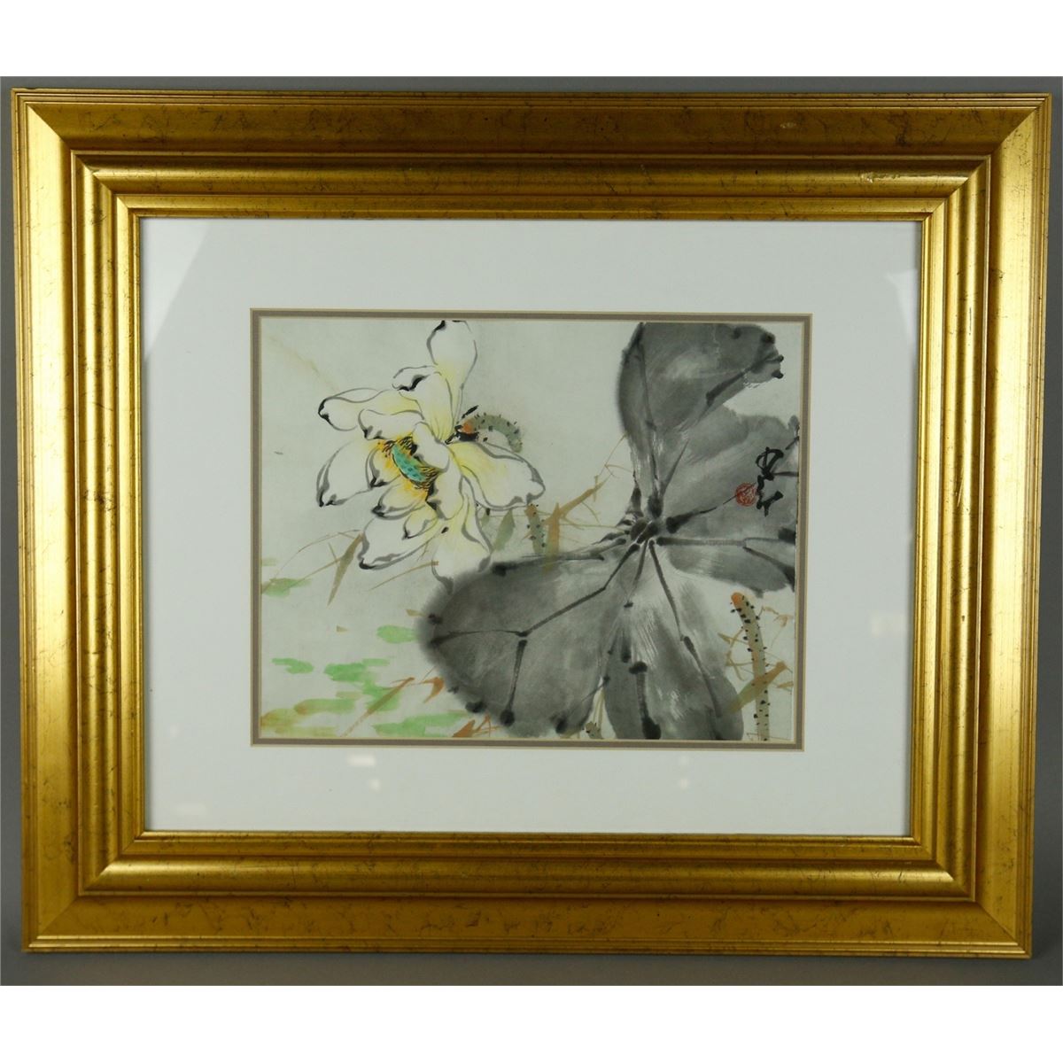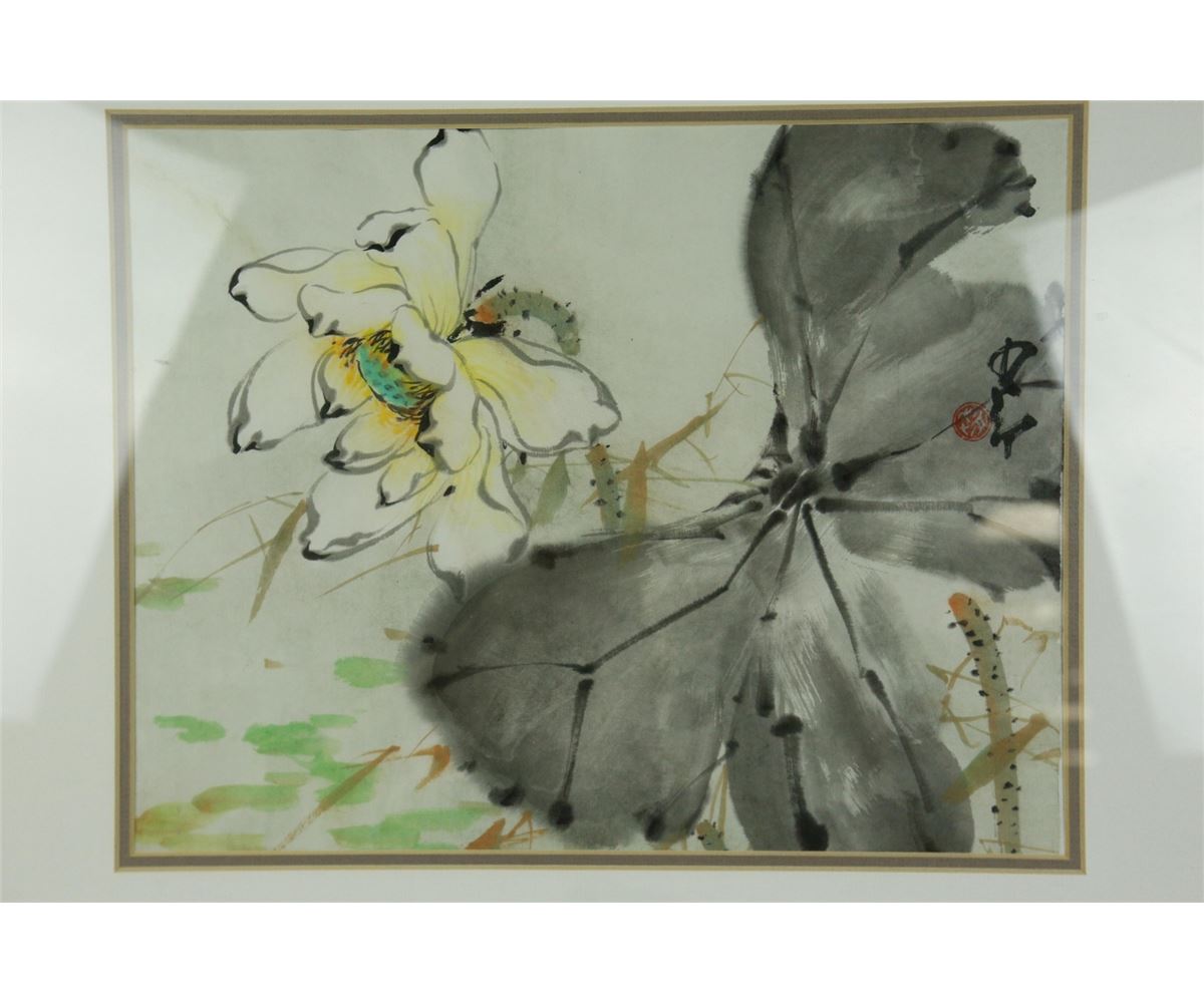 Lotus; Chinese ink and watercolour on paper; signed Zhao Shao'ang and inscribed with one artist seal; framed; 69 cm x 66 cm with frame, 3003 grams